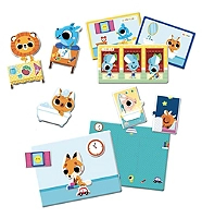 Un coffret qui invite l'enfant à recomposer, sur les tableaux aimantés, les différents rituels de sa journée. Grâce à ses 40 aimants et ses deux planches magnétiques à scratcher, l'enfant développe sa motricité fine et apprend à nommer toutes ses activités quotidiennes. Il est évidemment aidé par de petites cartes qui lui donnent des exemples.