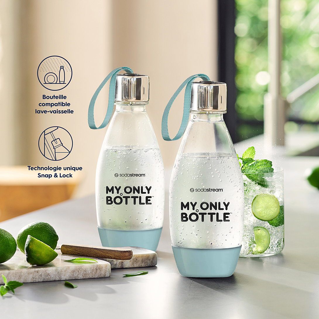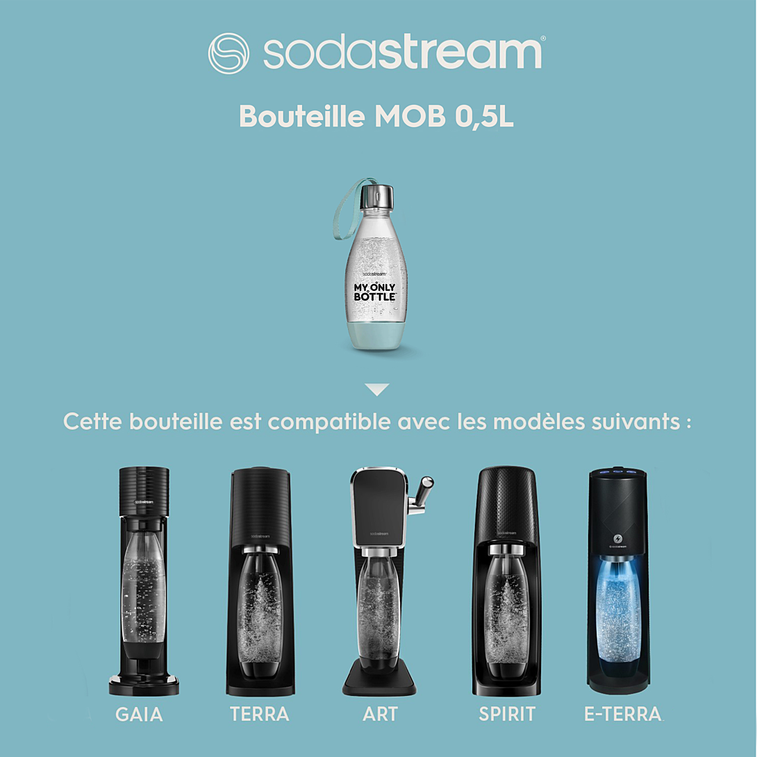 Bouteille de gazéification réutilisable en PET sans BPA* Bouteilles compatibles avec tous les appareils sodastream sauf CRYSTAL et PINGOUIN