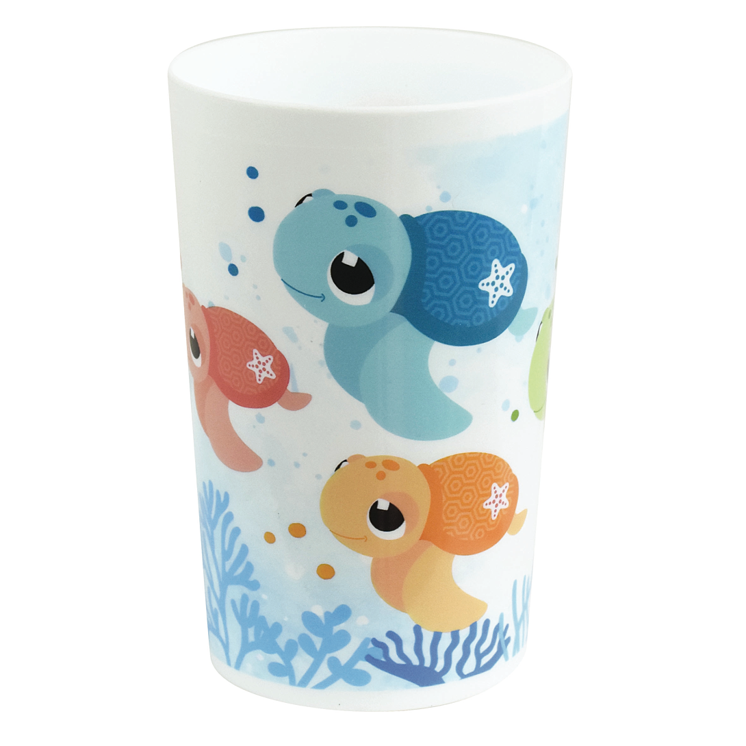 Votre enfant sera ravi de boire dans ce gobelet à l'effigie de ses petites tortues préférées. Ce verre est parfaitement adapté aux enfants grâce à sa contenance : 220 ml ! Votre enfant ne pourra plus s'en passer ! Hauteur : +/- 10 cm