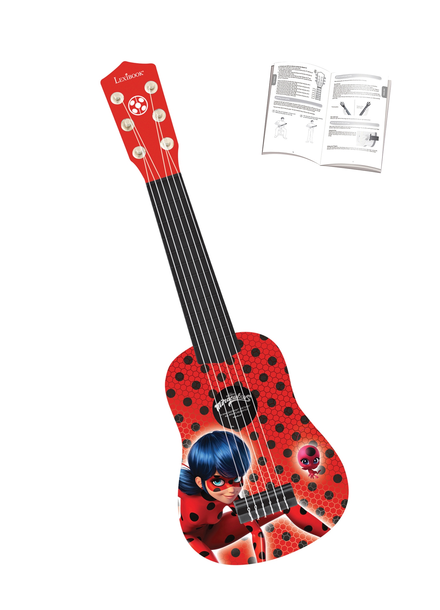 • Une petite guitare avec un fantastique design Miraculous, idéale pour accompagner les jeunes guitaristes dans leurs premiers pas en musique ! • Taille : environ 53 cm. • En plastique. • 6 cordes. • Possibilité d’accorder (syntoniseur non fourni). • Un guide est fourni pour apprendre à jouer de la guitare !