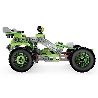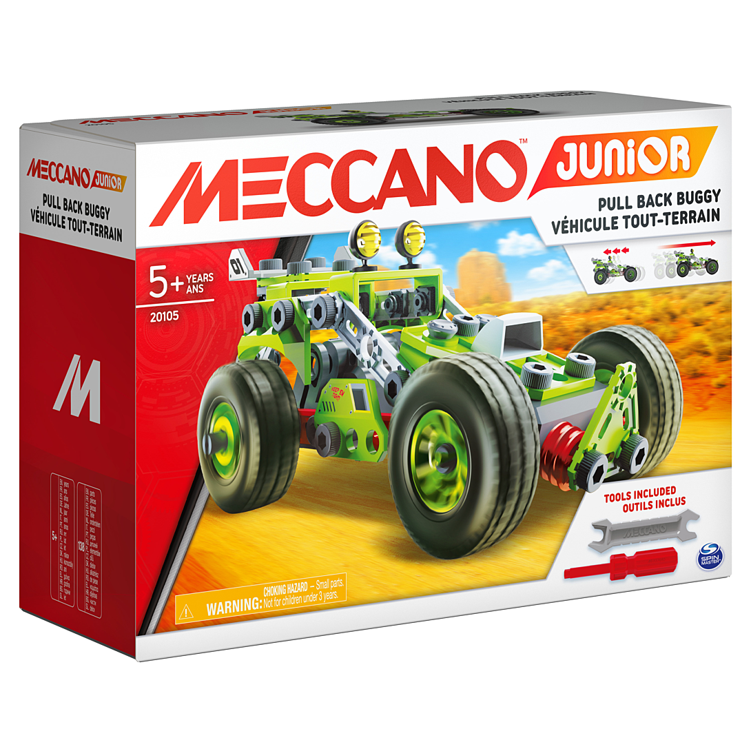 3 modèles de véhicules à rétrofriction à construire. Des modèles faciles à monter et adaptés aux petites mains. Développe la logique, la motricité et la créativité des plus jeunes. De nouvelles pièces Meccano colorées faciles à assembler permettant tout type de construction. Les constructions sont plus solides et plus durables. Chaque modèle est à décorer avec des autocollants pour pouvoir les personnaliser. 3 modèles à construire : Quad, Buggy ou 4x4. 138 pièces, 2 outils de montage et une planche d'autocollants inclus. Boîte carton refermable. A partir de 5 ans.
