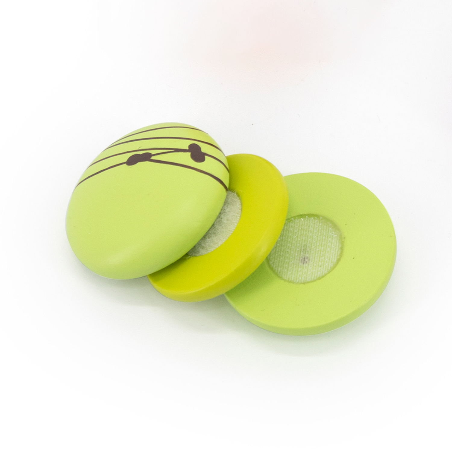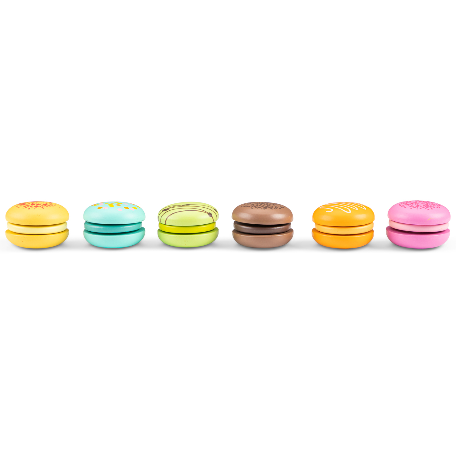 Macarons 6 pièces, un ensemble de dinette en bois de la marque New Classic Toys.