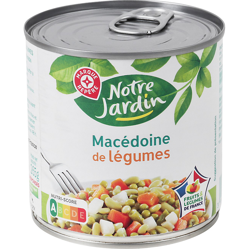 Ingrédients : Eau, carottes en dés, navets en dés, haricots verts coupés, petits pois, flageolets verts, sel.