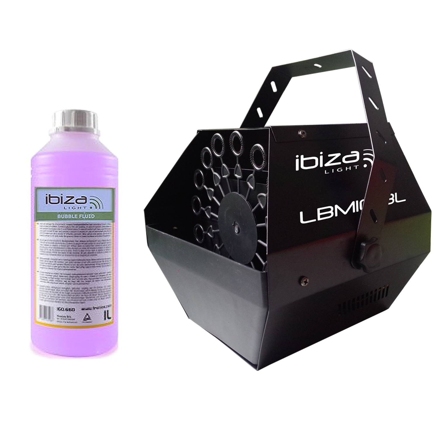 Machine à bulles IBIZA LIGHT en métal équipée d'un nouveau système de soufflerie à jet ascensionnel qui produit un flux très puissant de grosses bulles de savon, grâce à son grand ventilateur de 25 watts. 1L de liquide inclus