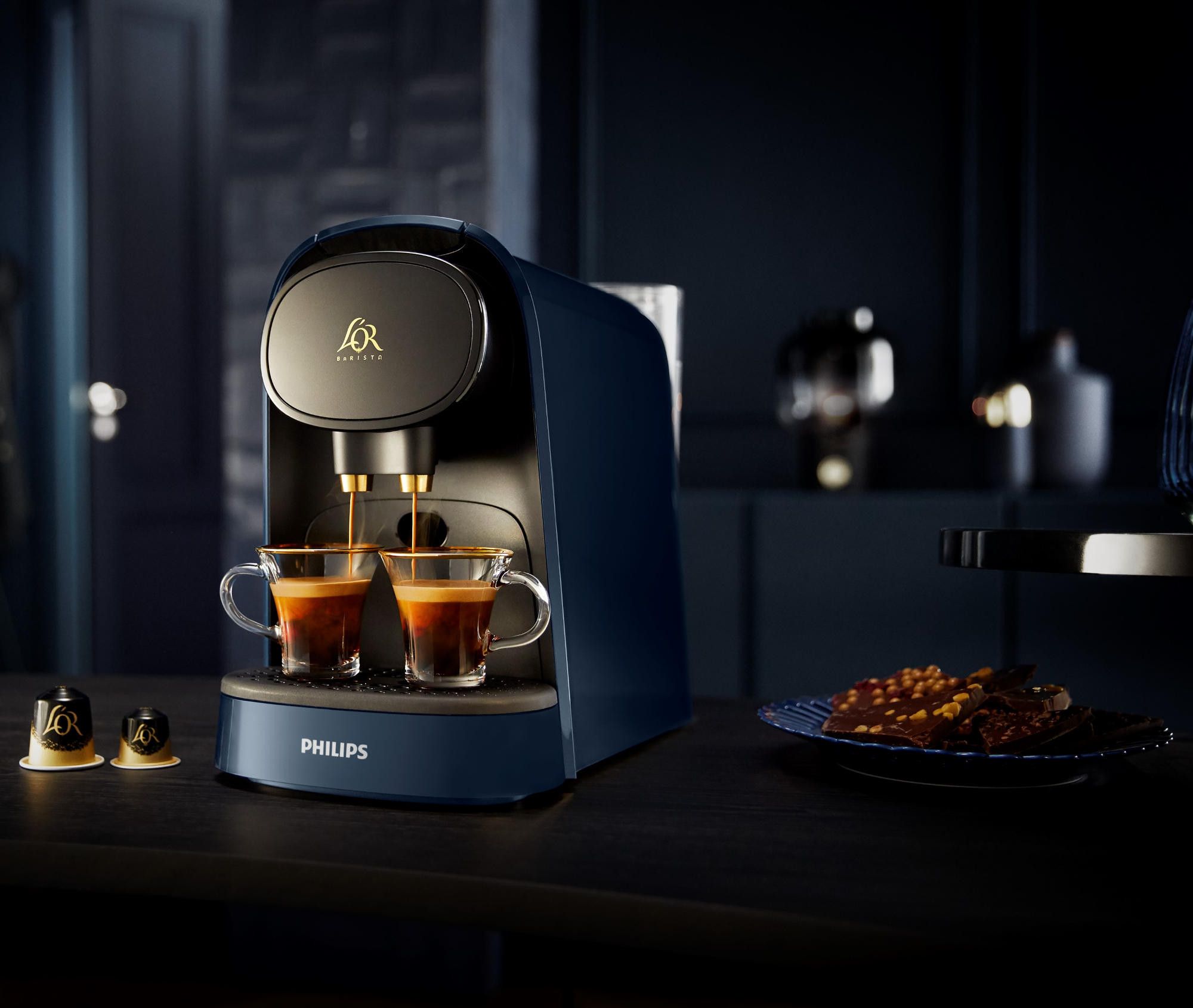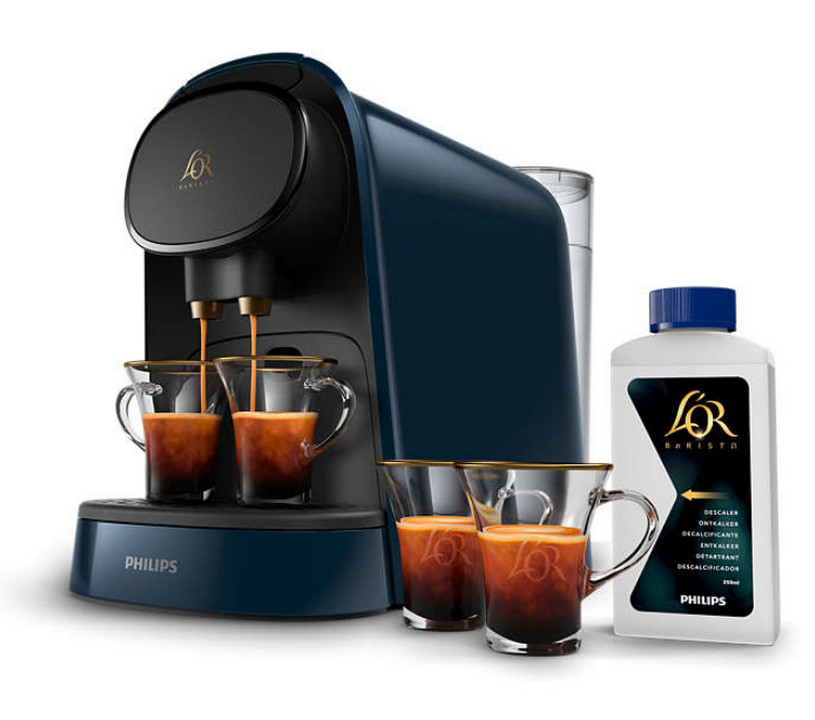 lm8012/41 - machine à café à capsules 19bars bleu nuit - Découvrez la nouvelle machine à café L'OR Barista LM8012/41 de Philips. Prenez deux fois plus de plaisir en préparant deux espresso classiques à la fois ou un double espresso dans une seule tasse, grâce au système exclusif L'OR Barista.Nouvelle machine à café exclusive L'OR Barista : La machine à café L'OR Barista est conçue pour fonctionner avec les capsules doubles (XXL) exclusives L'OR Barista et les capsules classiques L'OR Espresso.Préparez 2 cafés à la fois ou 1 café double dans une seule tasse : Le système L'OR Barista vous permet de préparer deux tasses d'espresso ou un double espresso dans une seule tasse grâce aux capsules doubles (XXL) exclusives L'OR Barista. Savourez un ristretto à deux ou un double espresso seul.Jusqu'à 19 bars de pression pour un espresso parfait : Savourez le goût d'un véritable espresso. Le système L'OR Barista prépare le café à haute pression - jusqu'à 19 bars - pour garantir une qualité digne d'un véritable espresso.Des volumes de café réglables de 25 à 220 ml : Préparez vos différents types de café grâce au système L'OR Barista. Savourez un ristretto, espresso, lungo et plus encore en utilisant des capsules classiques L'OR Espresso ou doublez votre plaisir grâce aux capsules doubles L'OR Barista (XXL).Personnalisez votre café préféré : Vous pouvez adapter votre machine en fonction de vos cafés. Il vous suffit de retirer le bac d'égouttement pour placer votre mug ou votre verre pour latte macchiato.Reconnaissance des capsules doubles, pour détecter automatiquement la taille des capsules : La technologie de reconnaissance des capsules doubles (XXL) L'OR Barista détecte automatiquement la taille des capsules et sélectionne le réglage optimal pour chaque café.Assortiment de 9 capsules inclus dans l'emballage : Chaque appareil est fourni avec un assortiment de capsules :4 capsules classiques L'OR Espresso et 5 capsules doubles L'OR Barista.Avec 2 tasses à espresso et un flacon de détartrant : La boîte comprend 2 élégantes tasses à espresso L'OR Barista et un flacon de solution de détartrage.Également compatible avec les capsules Nespresso®* : La machine à café L'OR Barista est également compatible avec les capsules Nespresso®*.Compatible avec les capsules L'OR Espresso et L'OR Barista : Utilisez les nouvelles capsules doubles (XXL) exclusives L'OR Barista.Un grand choix de cafés : ristretto, espresso, lungo, etc.Un ristretto pour 2 ou un double espresso pour un. -