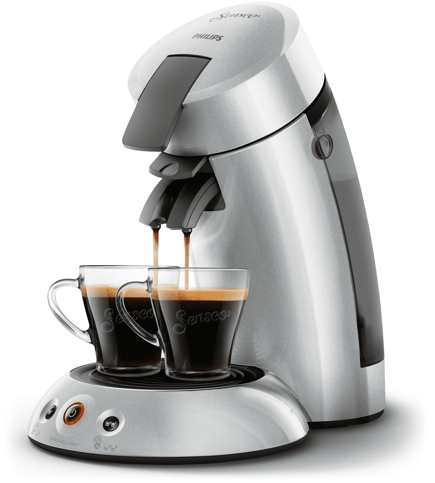 La technologie Booster d'arômes répartit l'eau sur la dosette de café grâce à ses 45 trous afin d'obtenir un goût intense, tandis que la technologie Crema plus garantit une couche de crème d'une finesse et d'une onctuosité optimales. Vous pouvez désormais préparer une café fort et court de deux simples pressions sur un bouton.La technologie Booster d'arômes répartit l'eau chaude de manière uniforme sur toute la dosette SENSEO® grâce aux 45 buses d'arôme. Tirez le meilleur de votre dosette, pour un café SENSEO® on ne peut plus délicieux.La technologie Crema plus produit une couche de crème particulièrement fine et onctueuse. Pour chaque tasse de café SENSEO®.Appuyez à deux reprises sur le bouton 1 ou 2 tasses pour obtenir un café SENSEO® court et serré.Lors de la phase de développement, Philips teste les machines à café sur plus de 10 000 tasses, afin de garantir leur haute qualité et leur durabilité.SENSEO® propose un grand choix de saveurs et de mélanges. À chaque mélange correspond un arôme particulier, afin de satisfaire tous les goûts.Prépare une ou deux délicieuses tasses de café SENSEO® en moins d'une minute.La cafetière SENSEO® s'éteint automatiquement 30 minutes après la préparation du café, pour économiser l'énergie et assurer la sécurité de l'appareil.Cette machine à café à dosettes SENSEO® Original bénéficie d'une garantie de 2 ans. Nos machines à café à dosettes SENSEO® Original sont conçues pour offrir performance et robustesse, afin de vous préparer un délicieux café, tasse après tasse.