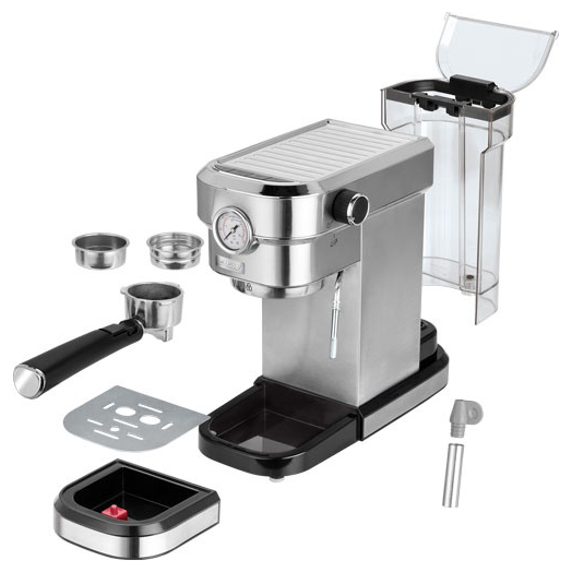 Machine à Café, Espresso et Cappuccino 20 Bars, Mousseur à Lait, Chauffe-tasses 1350 Argent MPMMKW-08M