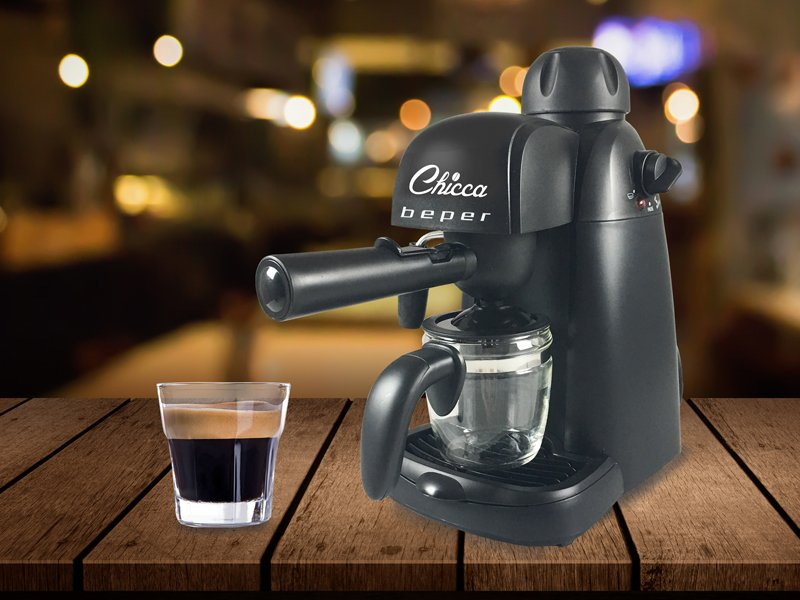 Machine à café expresso avec structure en abs, chaudière à pression en alliage d'aluminium (3,5 bars) et verseuse en verre graduée de 240 ml.