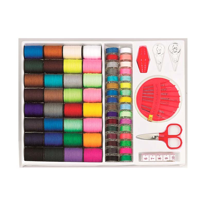 La machine à coudre est fournie avec un mini-kit d'accessoires indispensables à la couture pour une utilisation immédiate de la machine qui inclut : 4x bobines, 1x plaque de couture de bouton, 1x pied de biche à boutonnière, 1x enfile aiguille, 1x pied de biche pout fermeture à glissière, 1x tournevis, 2X aiguilles, 1x adaptateur, 1x pédale de commande antidérapante, 1x découseur, 1x broche porte-bobine, 32x bobines, 32 rouleaux de fil, 2x dé à coudre, 2x enfileurs, 1x boîte d'aiguilles, 1x ciseaux, 1x ruban à mesurer