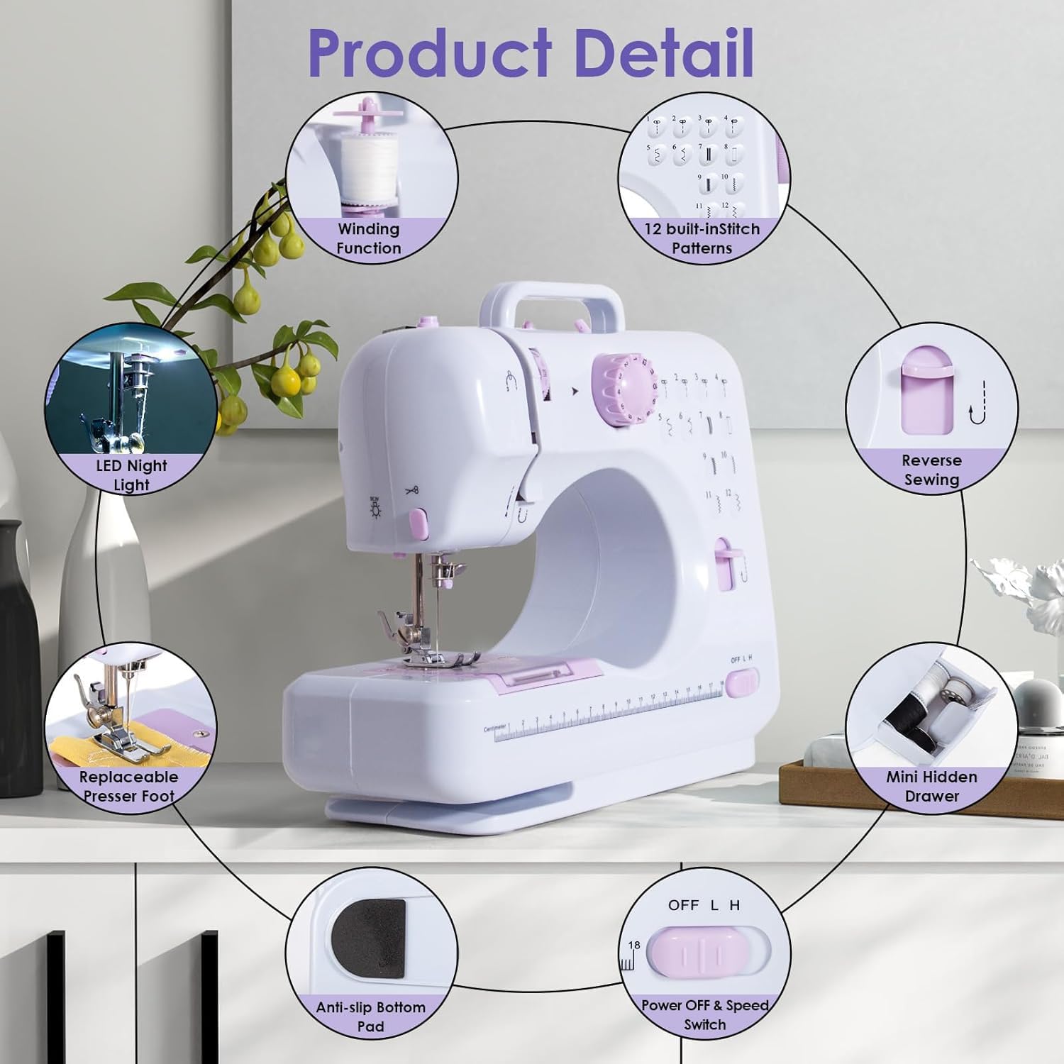 Machine à coudre électrique, machine à coudre débutant avec 12 programmes de couture, avec kit couture et