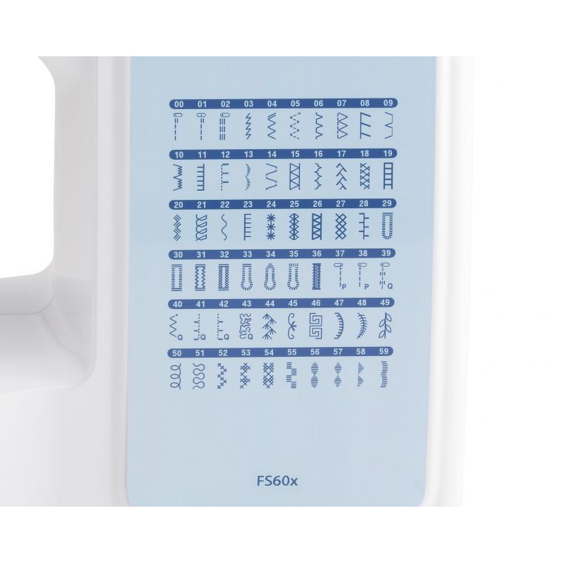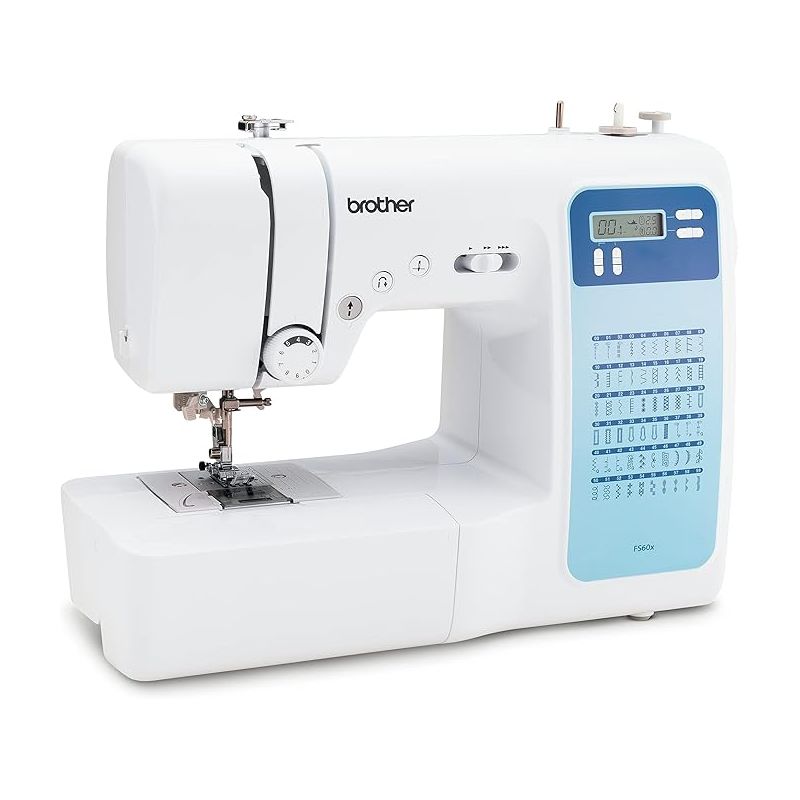 La Brother FS60x est une machine à coudre polyvalente équipée de 60 points fonctionnels et décoratifs, dont des points droits, zigzag, élastiques, de surjet, de quilting, de patchwork, de feston et des points de croix. Elle propose également sept boutonnières entièrement automatiques en une étape qui s'adaptent à la taille du bouton, ce qui lui permet de s'adapter à une grande variété de tissus et d'épaisseurs.