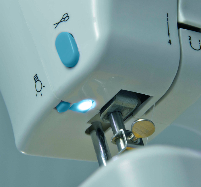 • Éclairage intégré. La machine est équipée d'une ampoule pour permettre de coudre plus confortablement. Elle permet d'améliorer la visibilité lors de la couture.