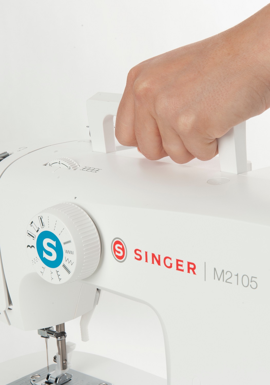 Parfaite pour les petits espaces, débuter la couture avec la M2105 et ses 8 programmes de points. Système de canette verticale "front load" Enfilage simplifié Règlage de la tension du fil Puissance du moteur : 70 Watts