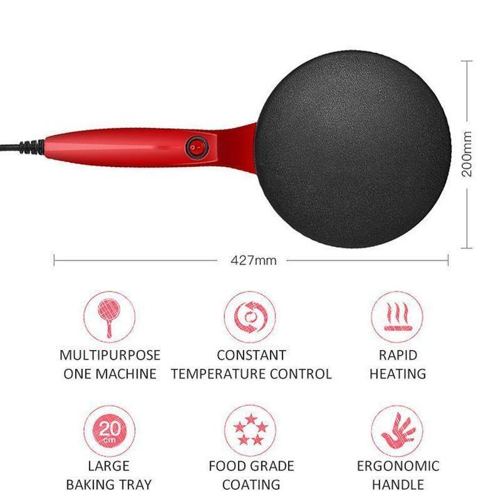 Plus rapide et plus facile à utiliser qu'une poêle traditionnelle, préparez des crêpes minces et savoureuses à la maison pour un petit déjeuner heureux ou une collation savoureuse! Plongez simplement la plaque antiadhésive dans la pâte et tournez: en quelques secondes, la crêpe est prête! Très facile à nettoyer, il comprend un bol pour préparer la pâte. Facile à utiliser Facile à nettoyer Revêtement antiadhésif Matériau de haute qualité Câble bakélite - anti -e Radiateur - Contrôle de température constante et protection contre le fuselage Design humanisé Polyvalence élevée et large éventail d'applications Tapis sans glissement Caractéristiques: Surface de cuisson sans azzage Thermostat avec lumière de température Accessoire: bol en plastique + batteur Diamètre: env. 20 cm PUISSANCE: 220V / 600W-50Hz