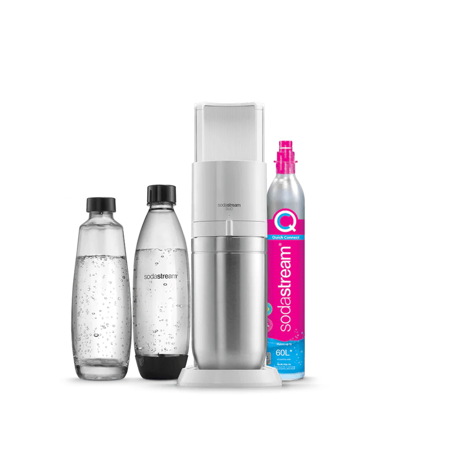 Machine à gazéifier Sodastream Duo Blanche Pack 1 carafe en verre 1L + 1 Bouteille 1L