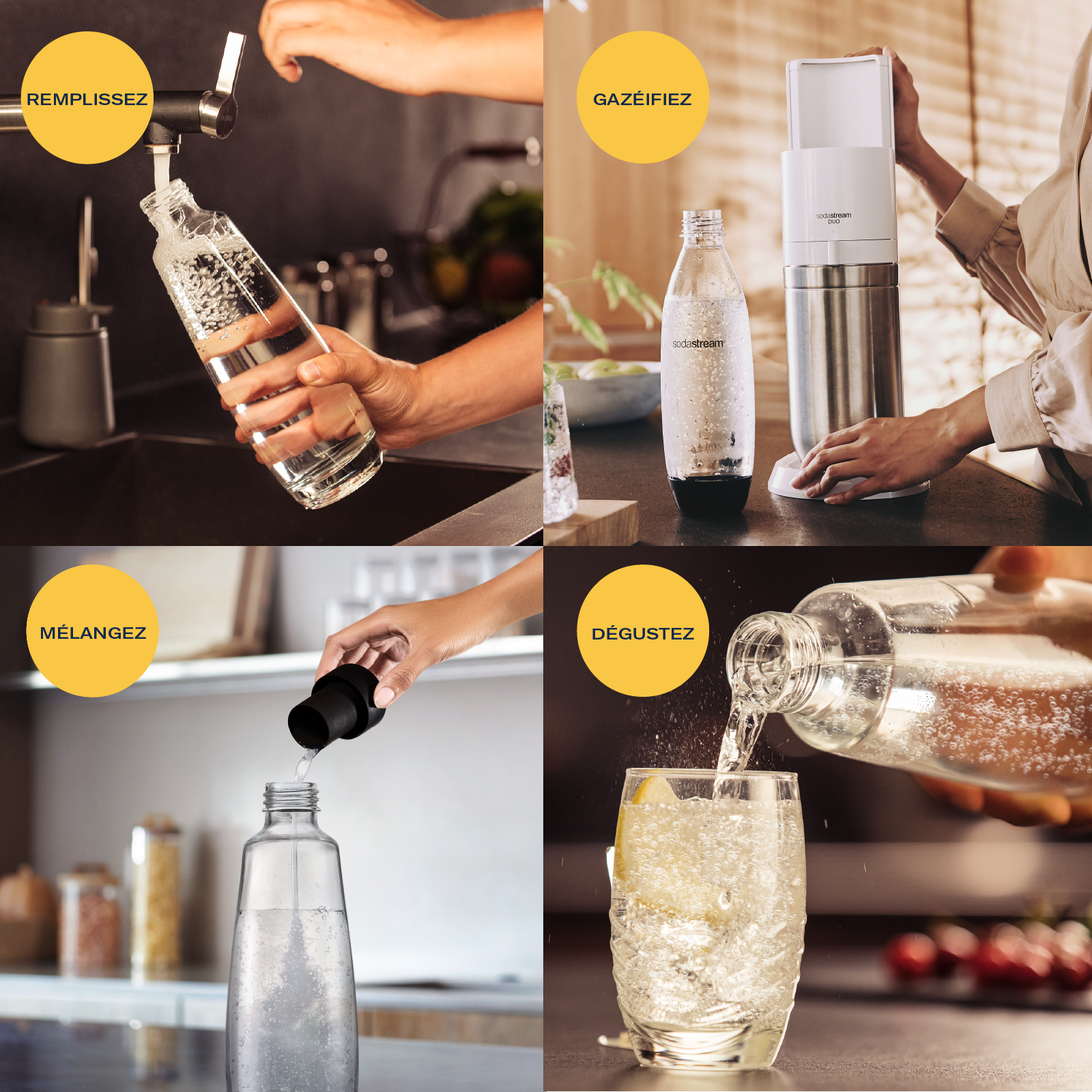 - DOUBLE USAGE - Compatible avec nos carafes en verre et bouteilles sans BPA, DUO vous permet de gazéifier selon vos envies, que ce soit à la maison ou en déplacement