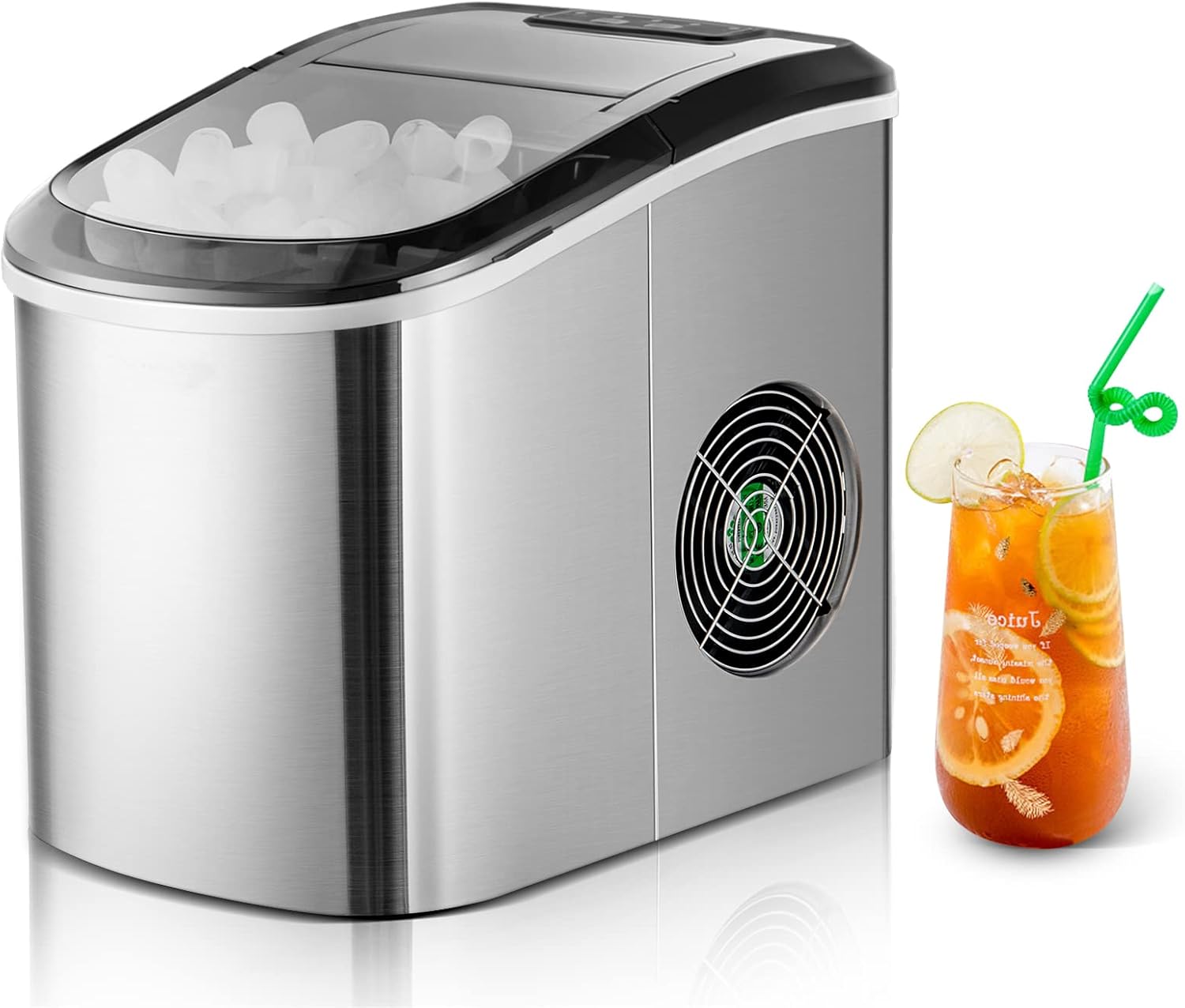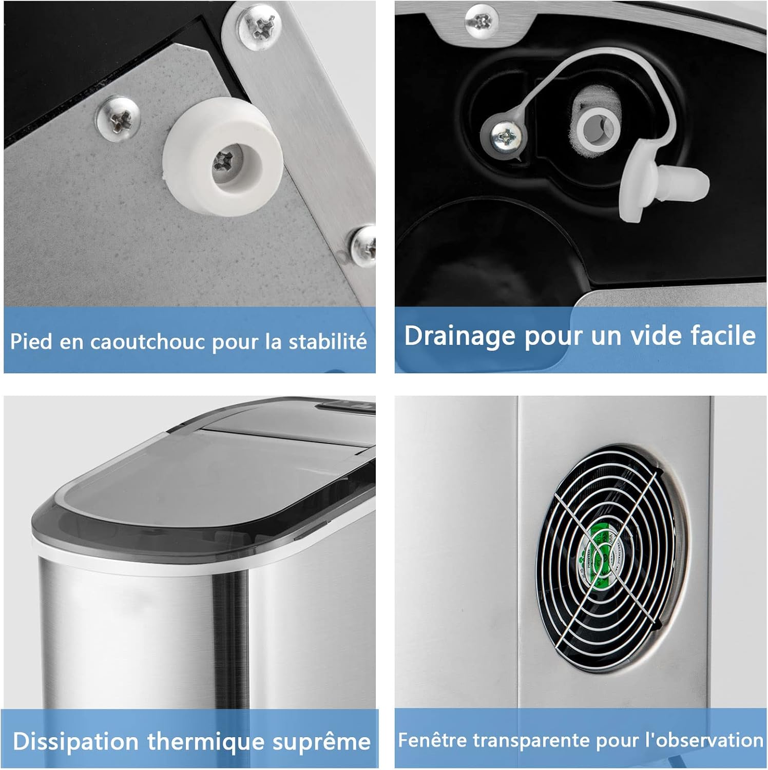 - Puissante capacité de fabrication de glace: Cette machine à glace est prise d’eau manuelle, la capacité de stockage de glace est de 700 g, la capacité maximale du réservoir d'eau est de 2,2 L et la capacité de glace pendant 24 heures est de 12 kg, vous n'aurez plus jamais à faire face à des bacs à glaçons embêtants.