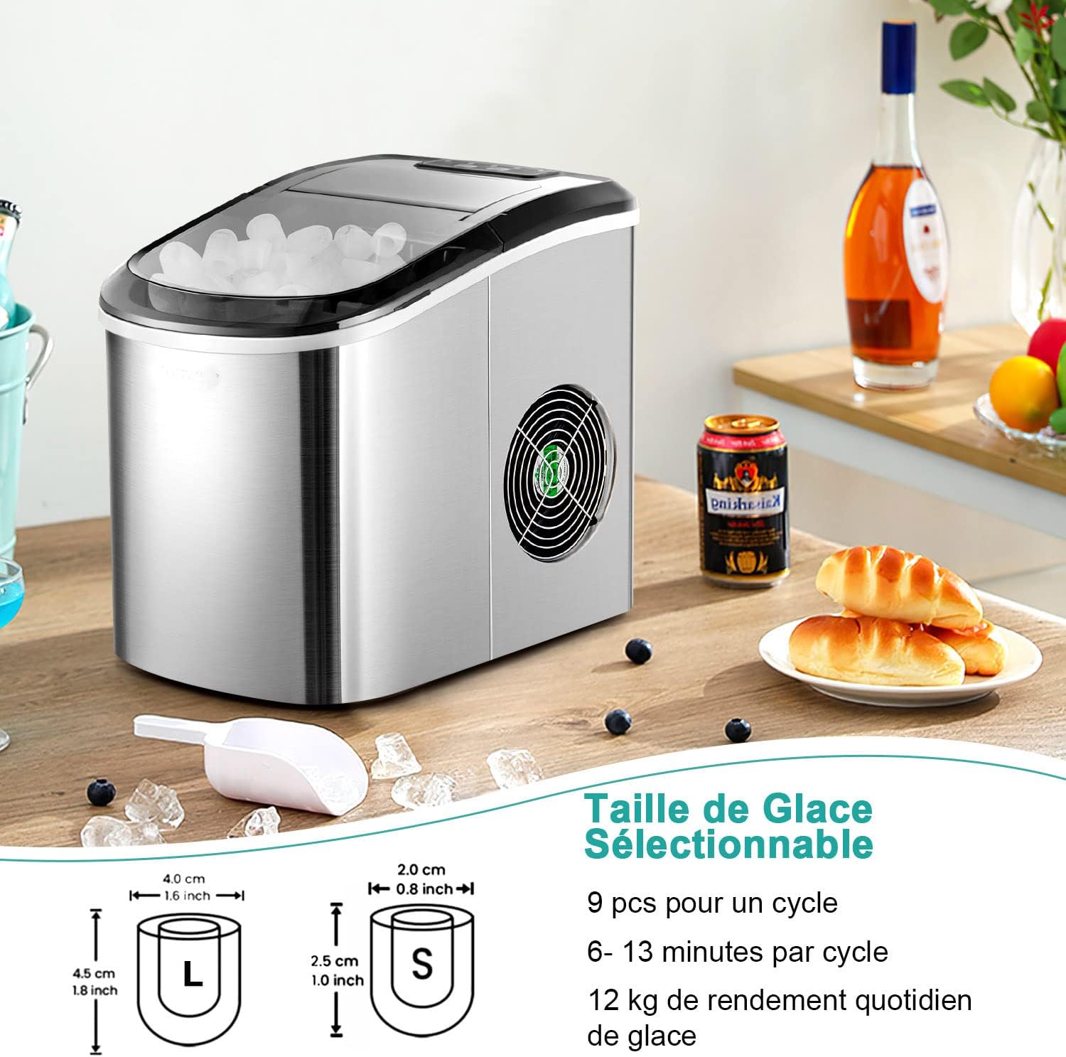 Machine à glaçons, 12kg en 24h, 9 pièces de 6-13min, 2 tailles de glaçons, machine à glaçons 2,2L