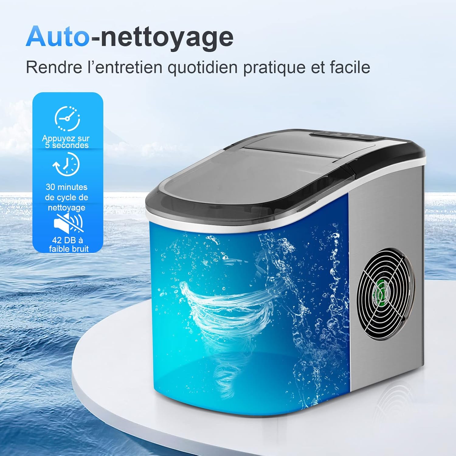 | Libellé | Machine à glaçons, 12kg en 24h, 9 pièces de 6-13min, 2 tailles de glaçons, machine à glaçons 2,2L |