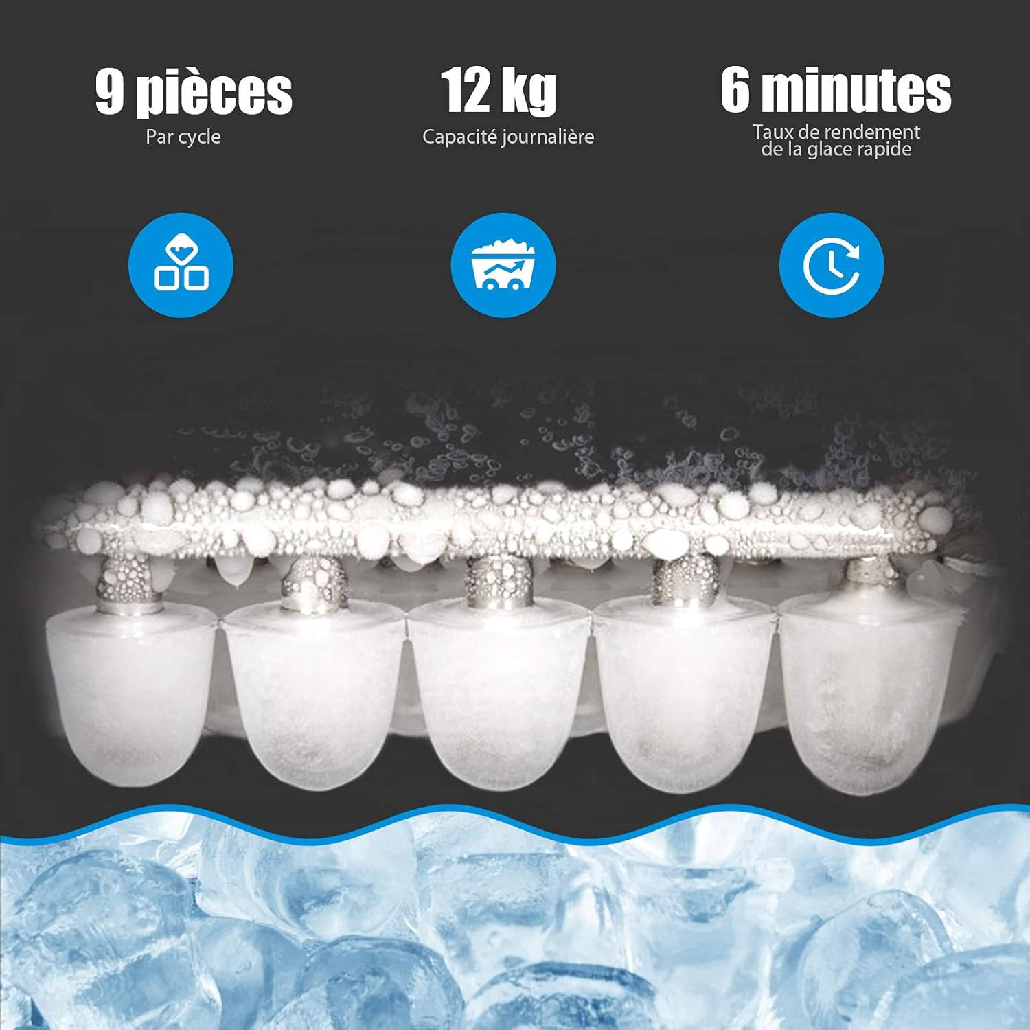 Offrir 9 glaçons en 6-13 minutes une fois