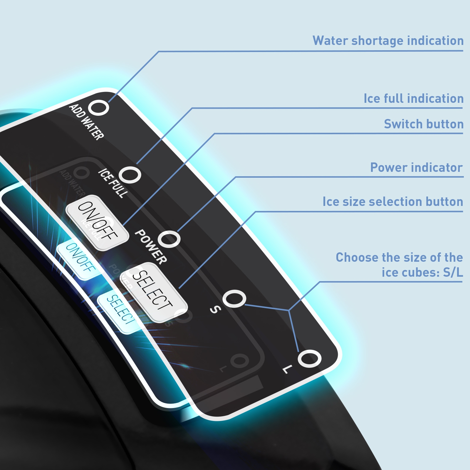 Fonctionnement intelligent intuitif : Le panneau de commande de notre machine à glaçons est conçu pour la simplicité, garantissant une expérience utilisateur fluide. Les trous de ventilation contribuent à une dissipation efficace de la chaleur, résultant en une haute efficacité de refroidissement avec un minimum de bruit.