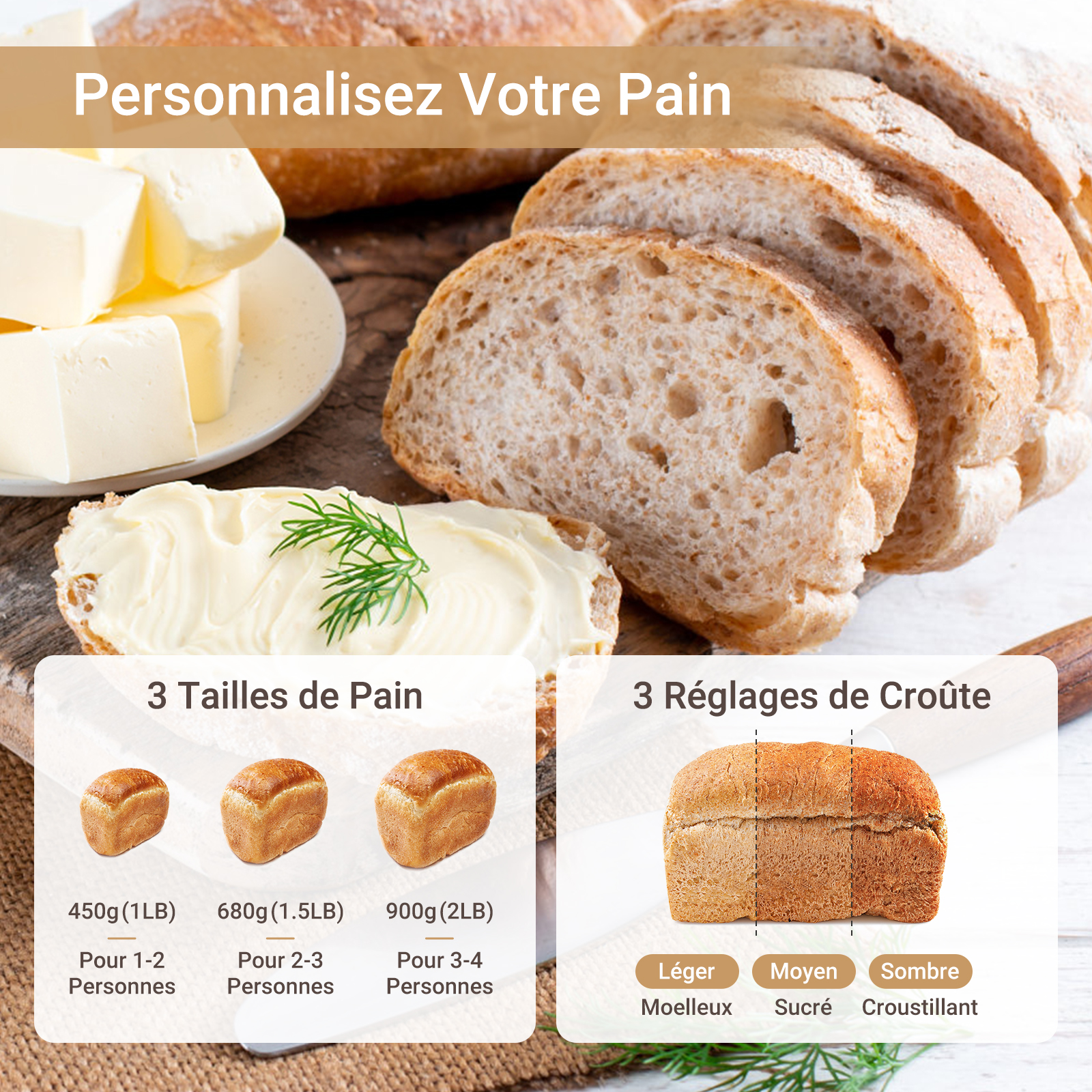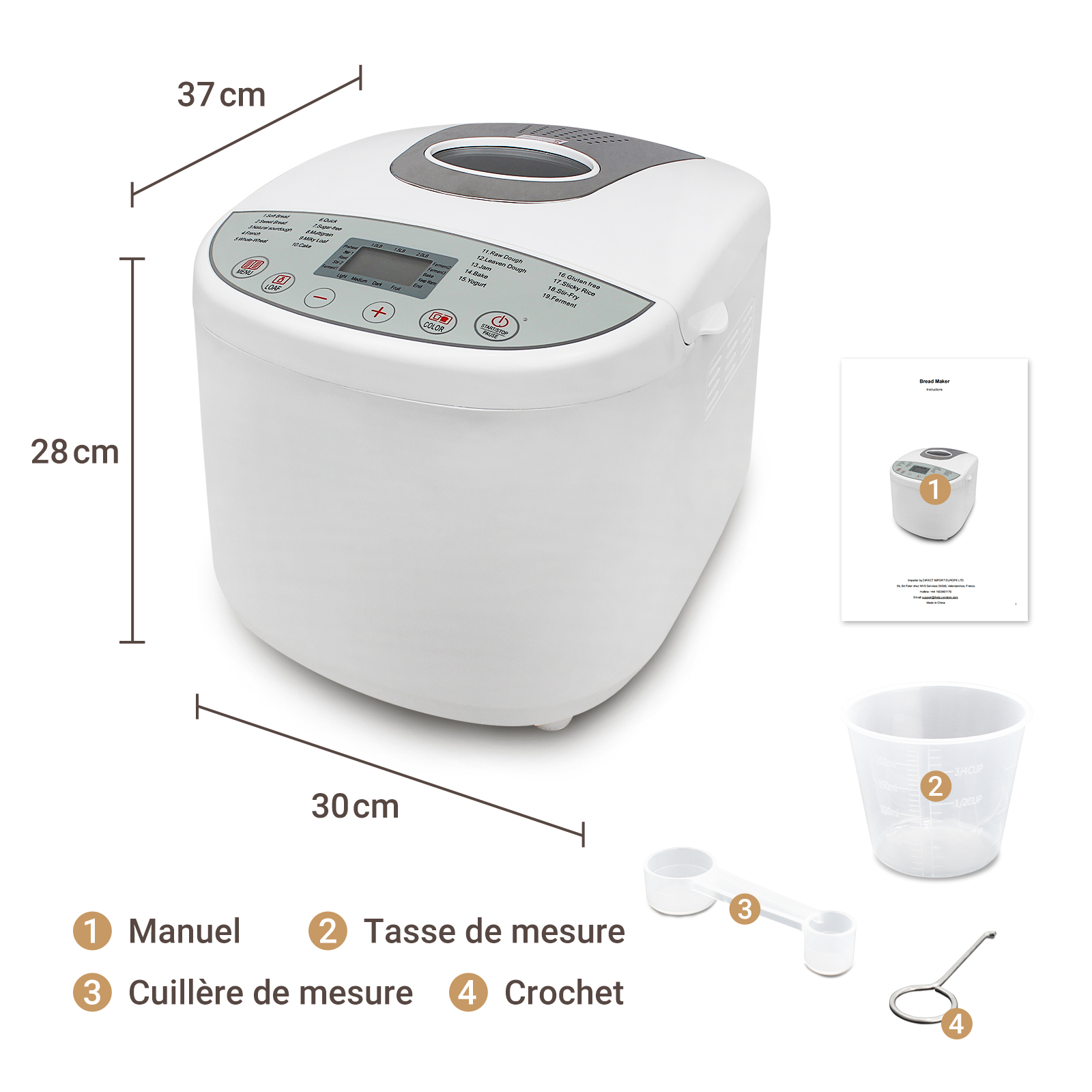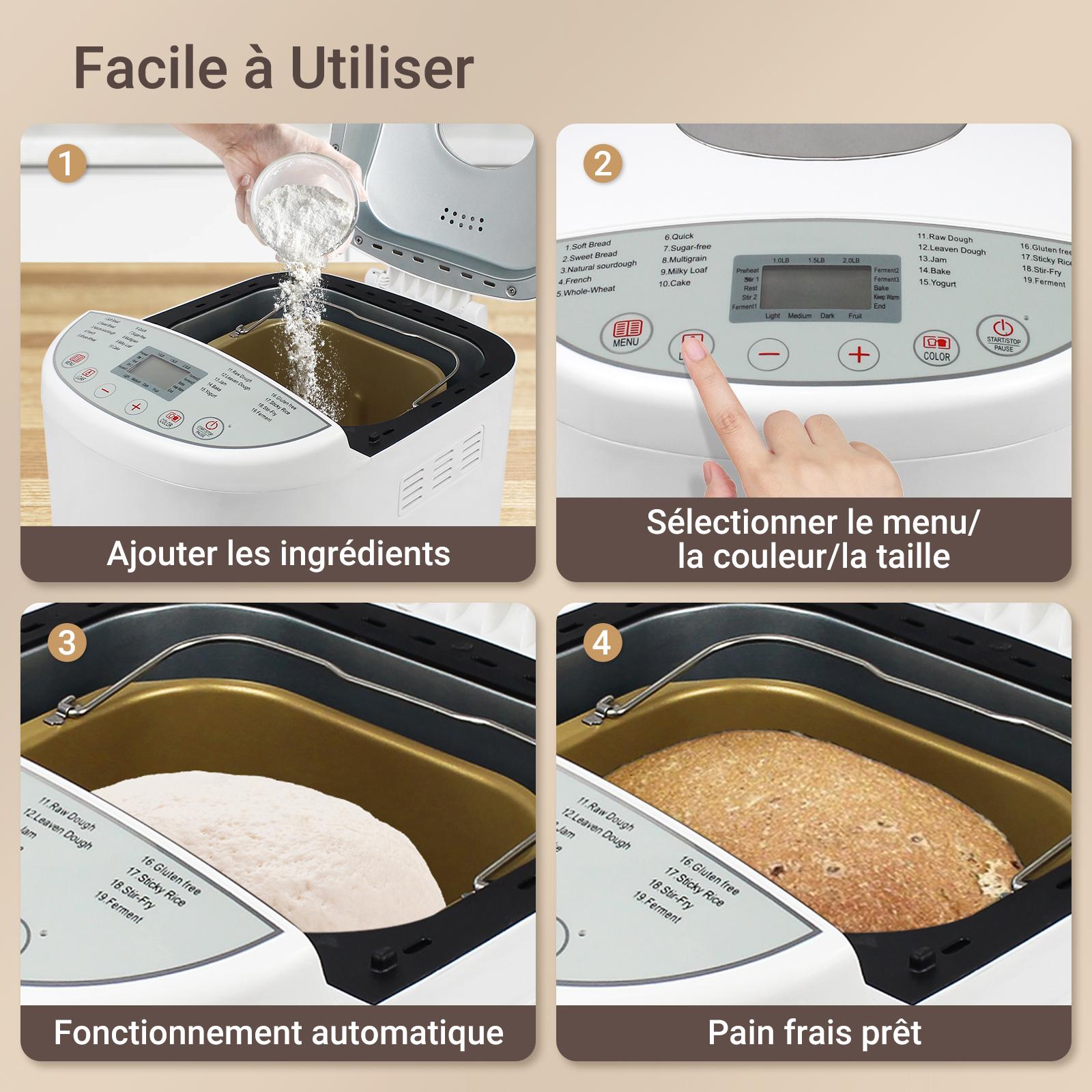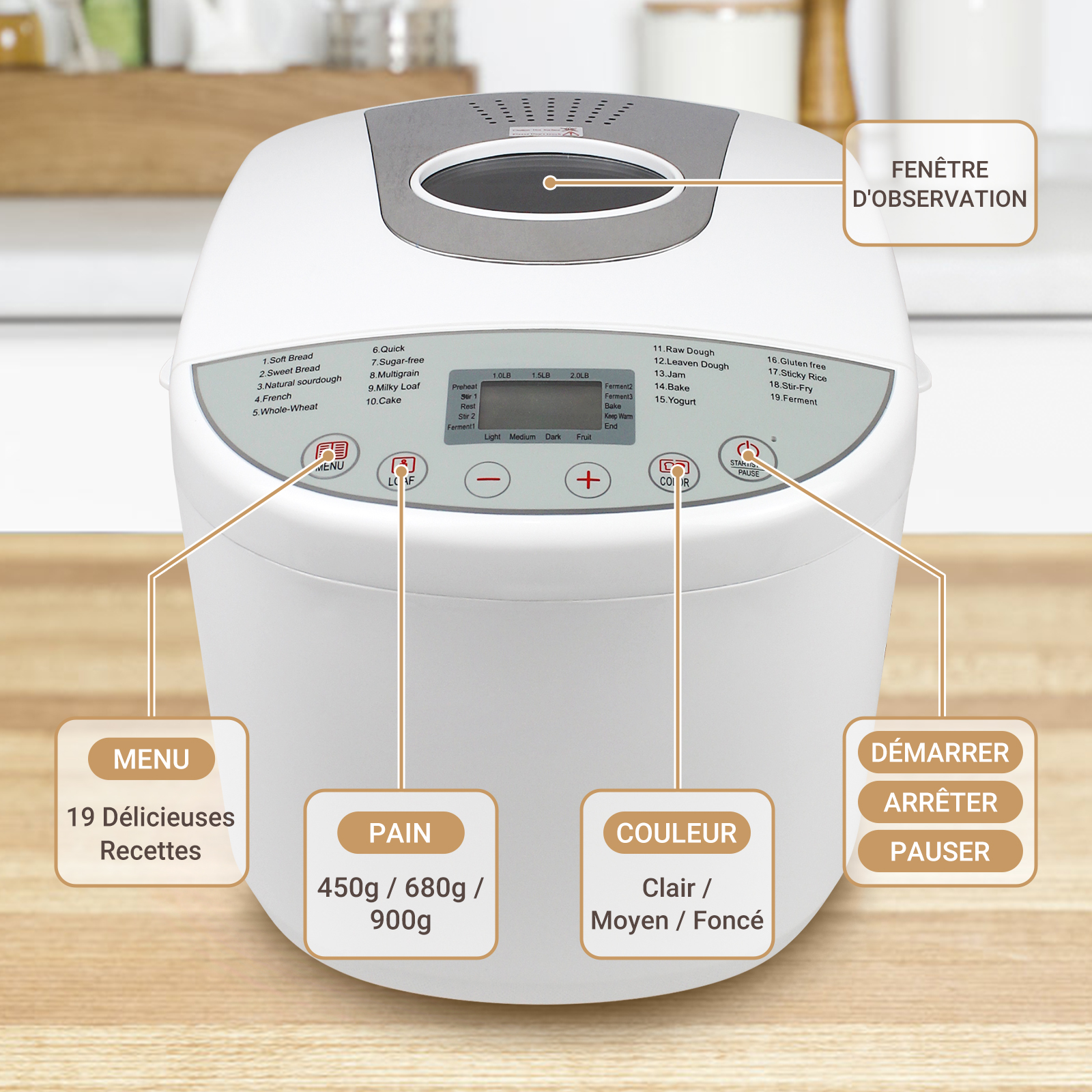 Machine à Pain, 19 Programmes pour Pain au Levain Naturel, Programmes Sans Gluten, Brioche, Pâtes, Confit