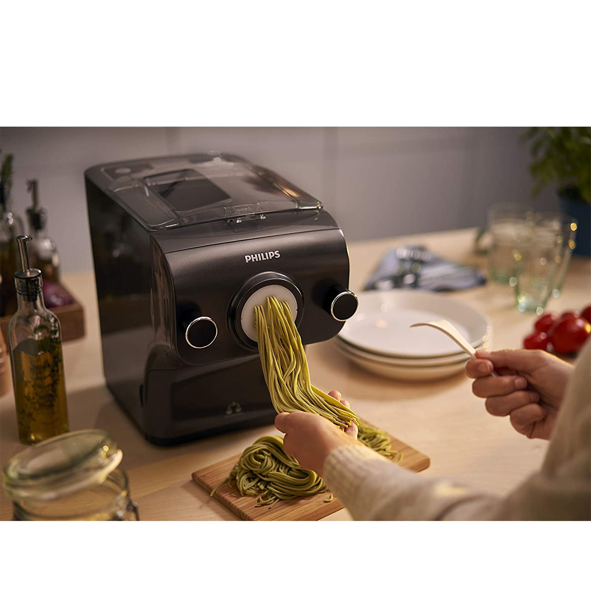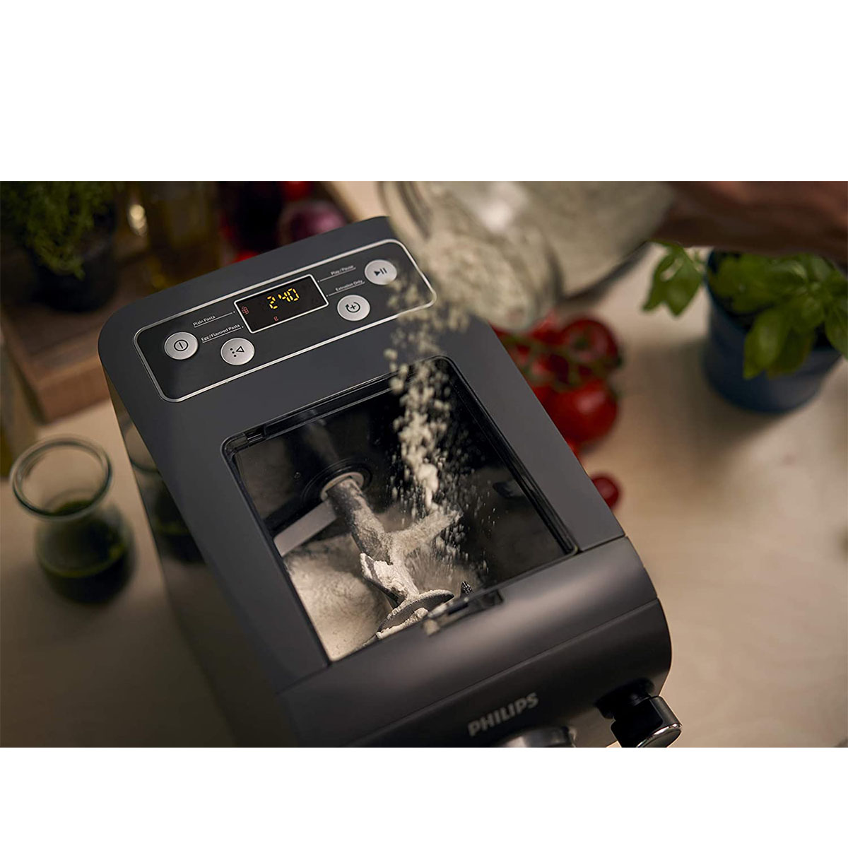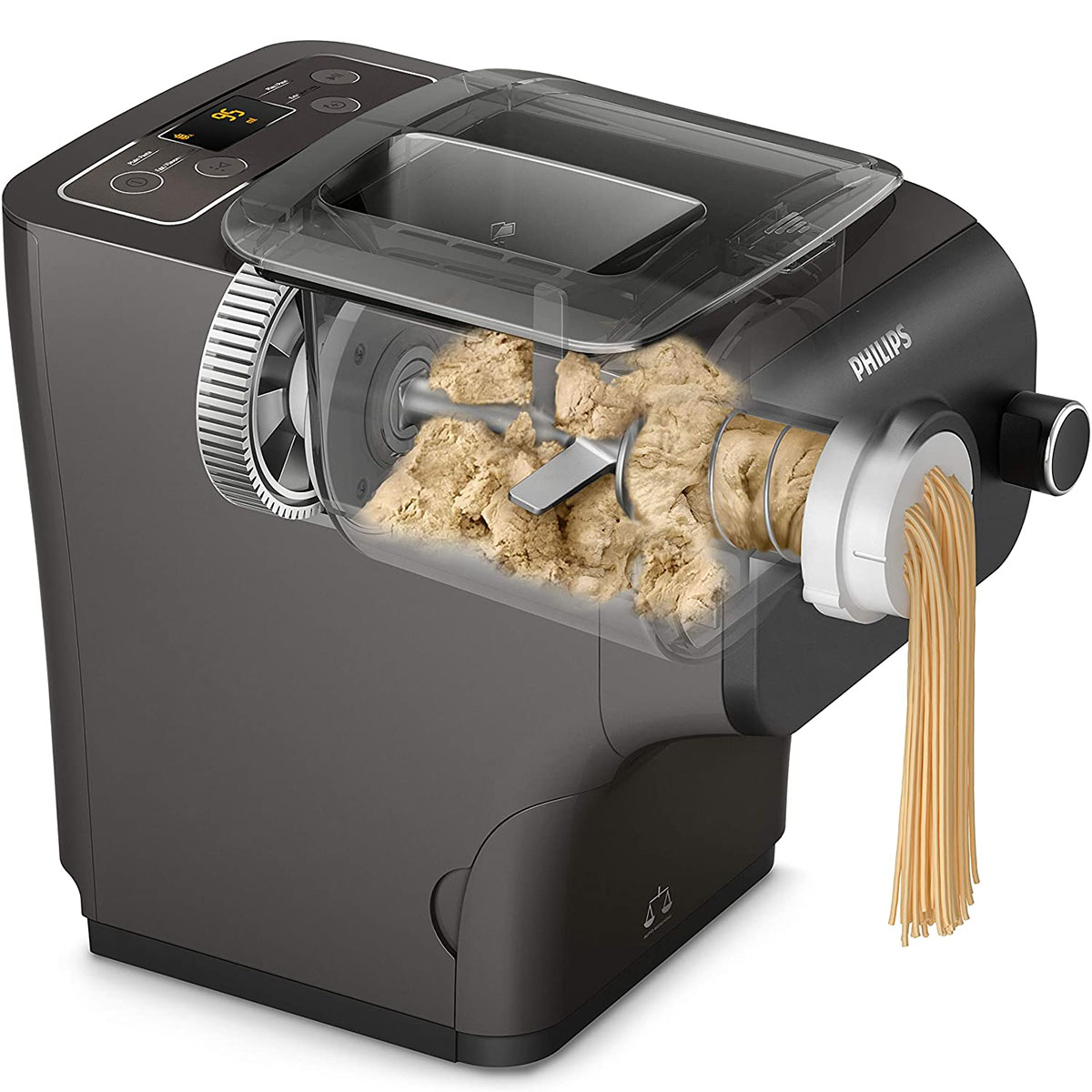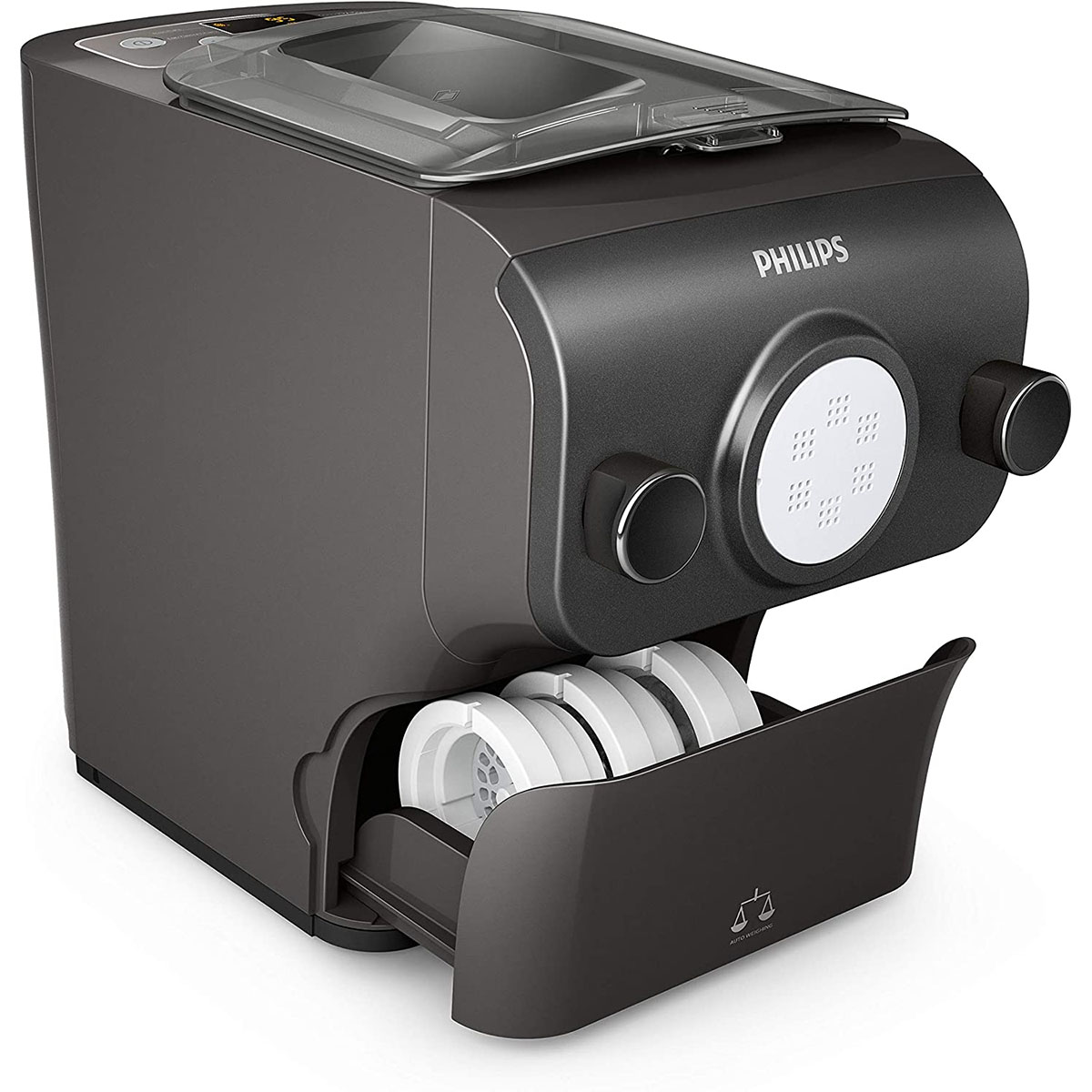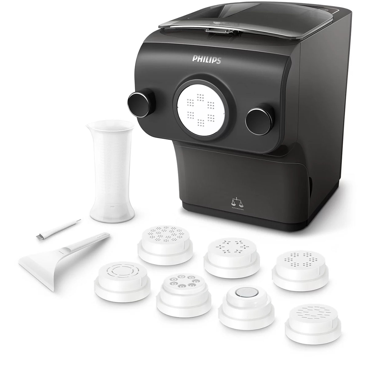 Grâce à sa fonction intégrée de pesage automatique, la machine à pâtes Philips pèse la farine et indique automatiquement la quantité requise de liquide, ce qui rend tout le processus encore plus simple et pratique.