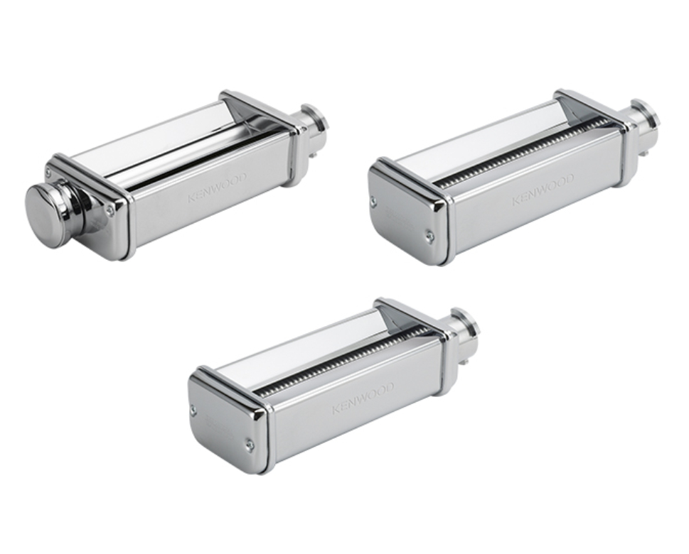 max980me - machine à pâtes fraîches 3 rouleaux inox - Machine à pâtes fraîches Kenwood MAX980ME composé de 3 rouleaux : Le laminoir avec variateur d'épaisseur 10 positions, la filière à fettuccines de 6,5mm de large et la filière à spaghettis de 1,5 mm de large.Ces accessoires sont réalisés en acier inoxydable et compatibles robots Kmix, Chef et Chef XL.Pâtes fraîchesFaire de délicieuses feuilles de lasagne fraîche est rapide et facile avec le rouleau de lasagne. La pâte à pâtes peut être roulée dans n'importe quelle épaisseur.Coupe sans effortAvec les deux autres accessoires pour pâtes, vous pouvez facilement transformer de grandes quantités de pâtes alimentaires en fettuccine (6,5 mm de large) et en spaghetti (2 mm de large).Pâtes authentiquesProfitez de plats de pâtes fraîches à la maison. Grâce au rouleau à lasagne et aux bols à nouilles, la préparation est rapide et facile et les résultats parlent d'eux-mêmes. - Matière : Acier inoxydable.