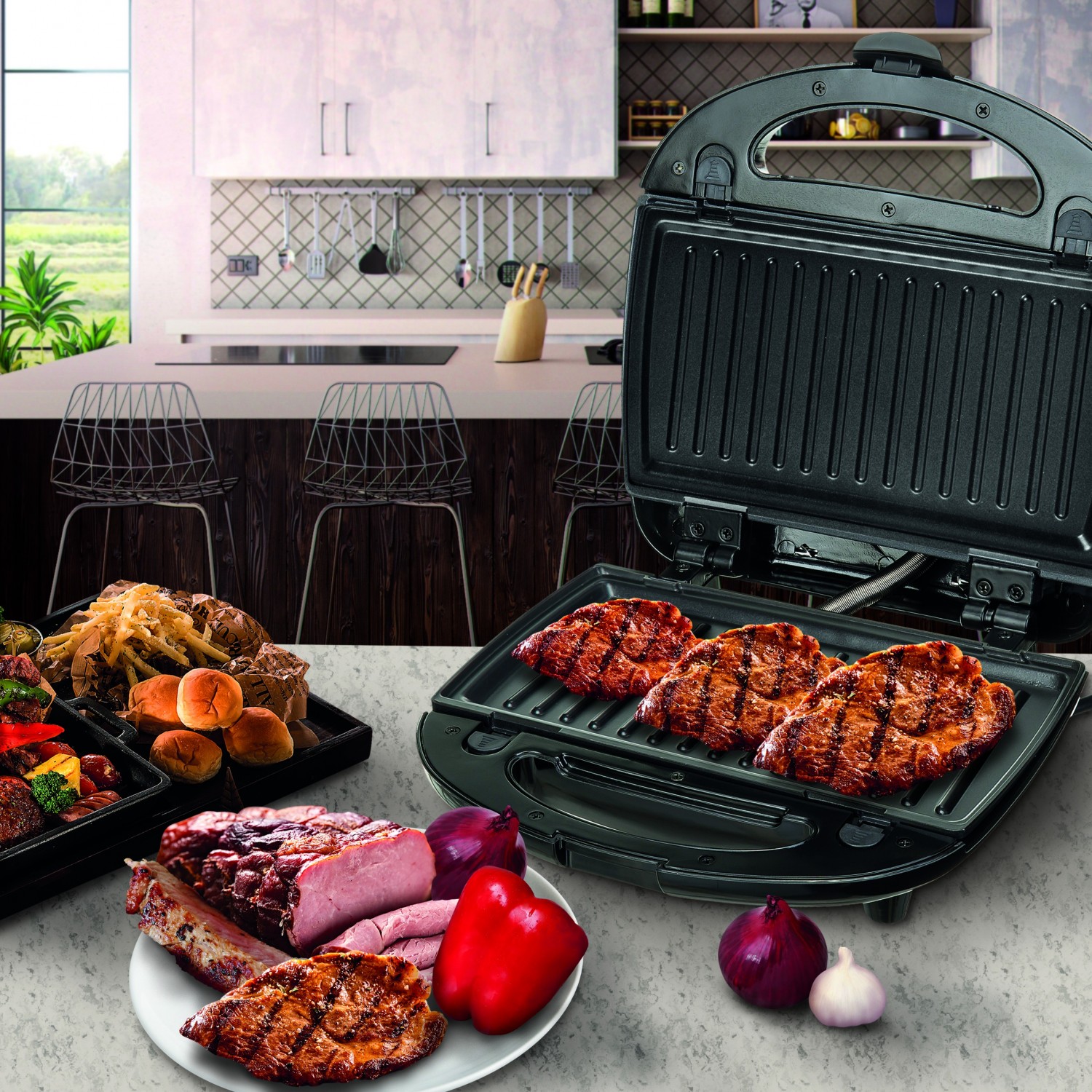 Un sandwich chaud pour le petit déjeuner? Légumes grillés comme accompagnement pour le dîner? Ou peut-être des gaufres sucrées pour le dessert? Grâce à la machine à sandwich 3 en 1 CR 3024 avec une puissance maximale de 1000 W, vous pouvez préparer chacun de ces plats en un clin d'œil! Le secret réside dans les trois plaques interchangeables pour différents usages.