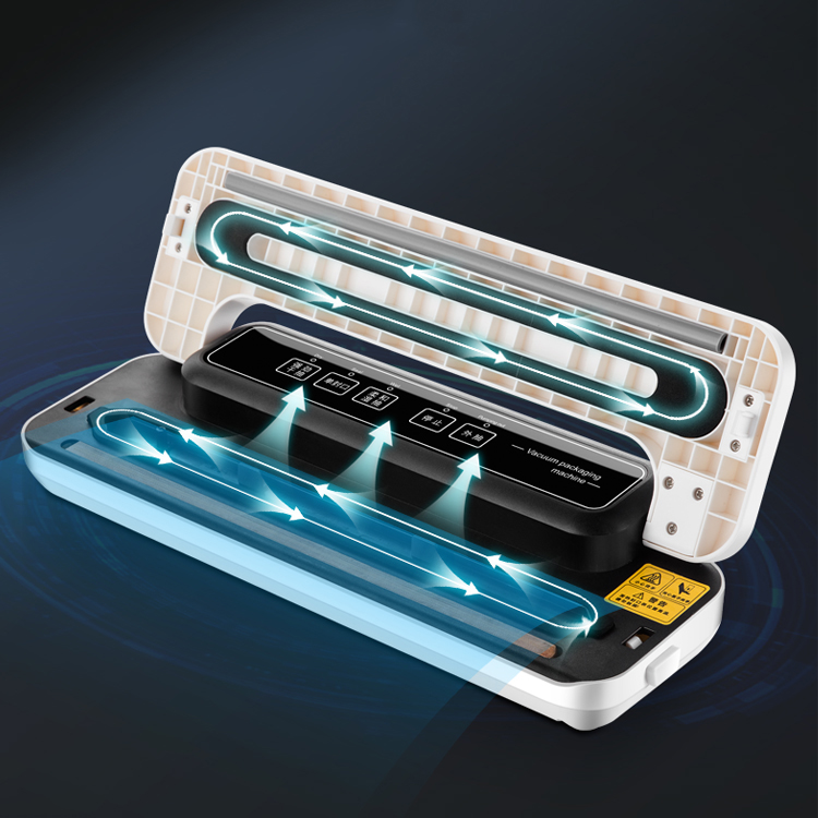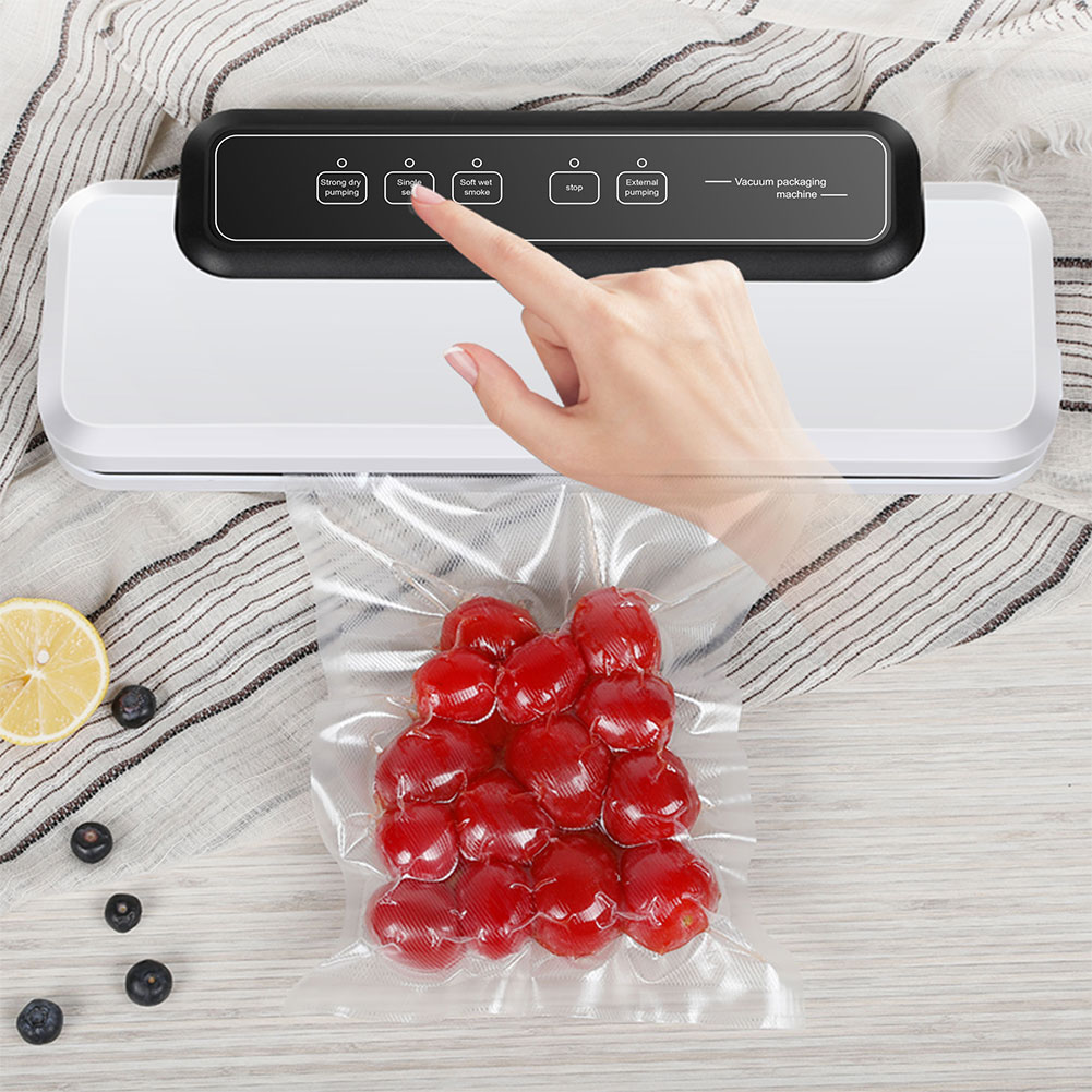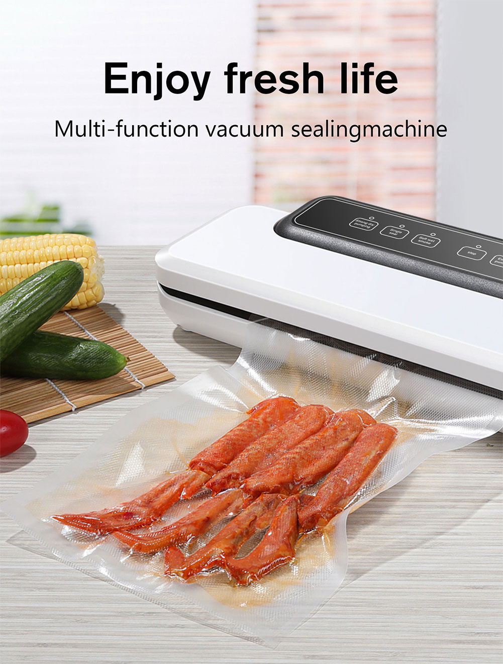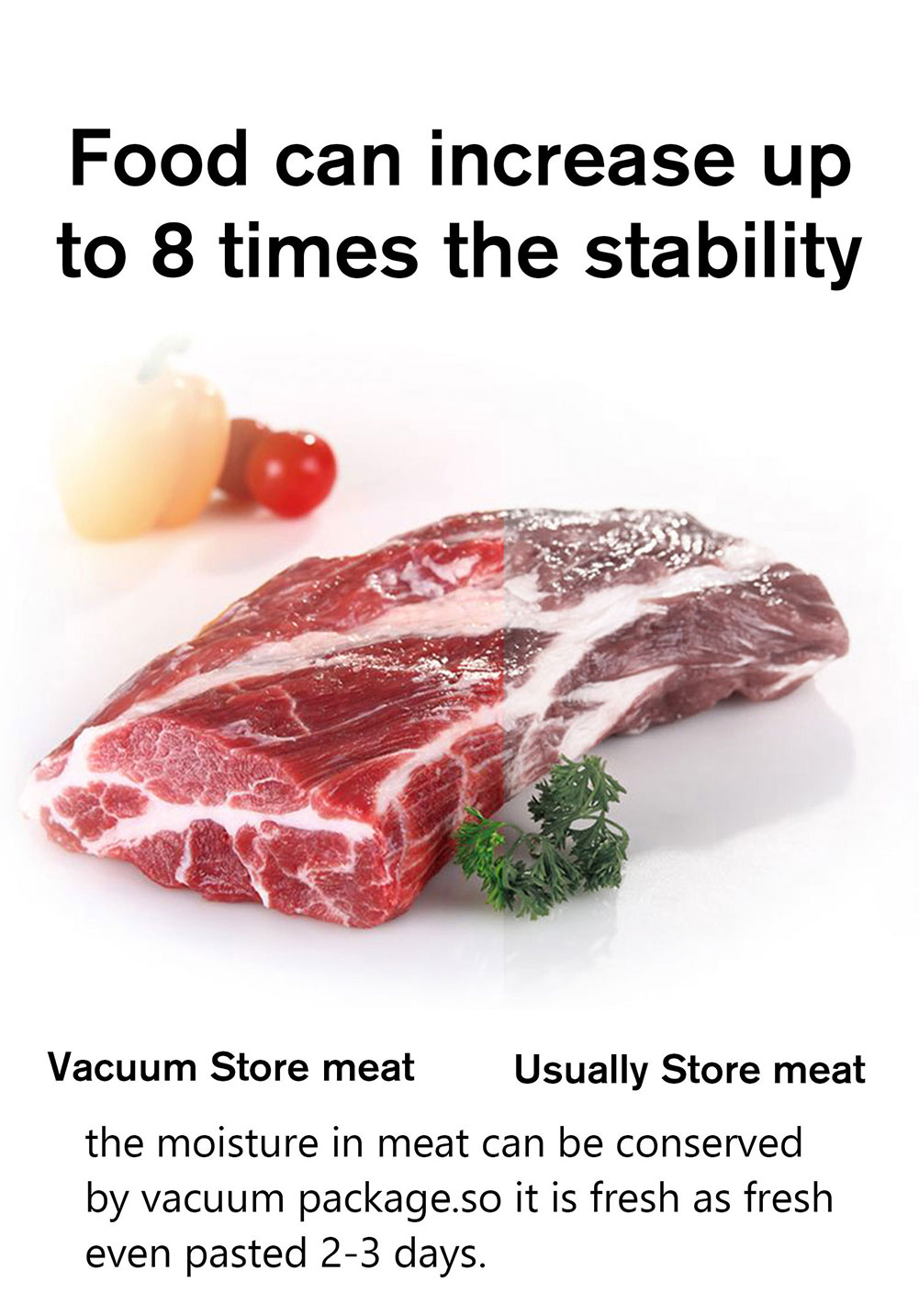 Nourriture idéale conservatrice Comprendre efficacement le cycle de stockage des aliments, empêcher la croissance des moisissures et des bactéries, conserve la nutrition et le goût des aliments, réduisent la détérioration. Multi-fonctions Le système d'étanchéité sous vide peut apporter des ajustements à différentes vitesses pour fournir la meilleure conservation à vos aliments en fonction du type de nourriture que vous souhaitez sceller. Dessin prolongé de la bande d'étanchéité La longueur maximale de la bande d'étanchéité thermique est de 30 cm, par rapport à d'autres produits, répond à vos besoins de stockage sous vide dans de grands sacs. Le scellant à vide peut également être utilisé avec de nombreux petits sacs en même temps. Utilisation facile L'épargnant alimentaire Smart Touch Button qui peut fonctionner avec un seul doigt. Vaste gamme d'utilisations La machine à vide peut être utilisée avec des sacs à vide pour la nourriture, des sacs de rangement comprimés, des réservoirs à vide, des boîtes à vide, des bouchons à vide à vin. Les caractéristiques Tension du produit: 100V-240V Puissance: 110W Taille d'étanchéité maximale: 30 cm Vide: -55 kpa