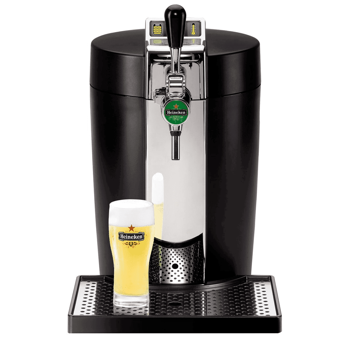 Dégustez chez vous des bières pression avec une mousse parfaite. Le système BeerTender refroidit les fûts à la température idéale de 4°C, tout en préservant la qualité de la bière pendant 30 jours après la mise en service du fût. Un indicateur permet de connaître le niveau de refroidissement du fût, pour s'assurer de servir une bière à la température de dégustation idéale. Variez les plaisirs en découvrant de nouvelles saveurs de bières grâce à la large sélection de fûts 5L compatibles dont Heineken, Affligem, Affligem Carmin, Desperados, Pelforth, Edelweiss etc. Le design des machines BeerTender combine esthétique et usage : les machines élégantes permettent d'incliner le verre à 45° dans un premier temps, puis de le redresser petit à petit jusqu'à obtenir le juste niveau de mousse. La poignée ergonomique permet un service facile que l'on soit droitier ou gaucher. Le plateau récolte-gouttes est amovible pour permettre un nettoyage simplifié.