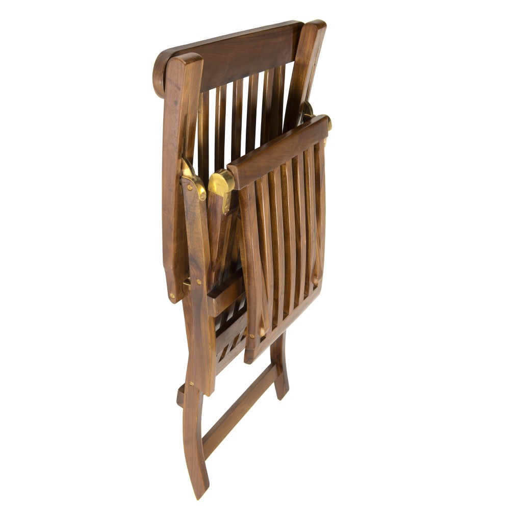 Les meubles en teck de cette collection sont légèrement teintés, pour leur donner une couleur miel. Pour conserver la couleur initiale de votre meuble, poncez légèrement ce dernier avec un papier de verre fin. Vous pouvez également appliquer une huile de teck en début de saison, il sera ainsi protégé et conservera sa teinte miel. Le teck est un bois précieux et imputrescible très utilisé pour la fabrication de meubles de jardin car il est extrêmement résistant aux agressions climatiques les plus rudes et constantes (humidité). Les plantations Le bois utilisé dans la fabrication de nos meubles de jardin provient uniquement de forêts de replantation provenant de l'île de Java. Ces forêts sont gérées par l'organisme d'état Perum Perhutani, qui détermine une saisonnalité et un quota de coupe afin d'assurer la durabilité de la ressource. L'entretien Les meubles en teck peuvent rester à l'extérieur sans aucun traitement particulier. Après quelques mois voire quelques années, le bois prendra une teinte grisée. Pour conserver la couleur initiale de votre meuble ou pour retirer une tache, poncez légèrement ce dernier avec un papier de verre fin. Vous pouvez également appliquer une huile de teck en début de saison, il sera ainsi protégé et de couleur miel. Il est fortement conseillé d'abriter ce mobilier et de le protéger du gel pendant la période hivernale afin qu'il ne s'abîme pas. Meuble monté