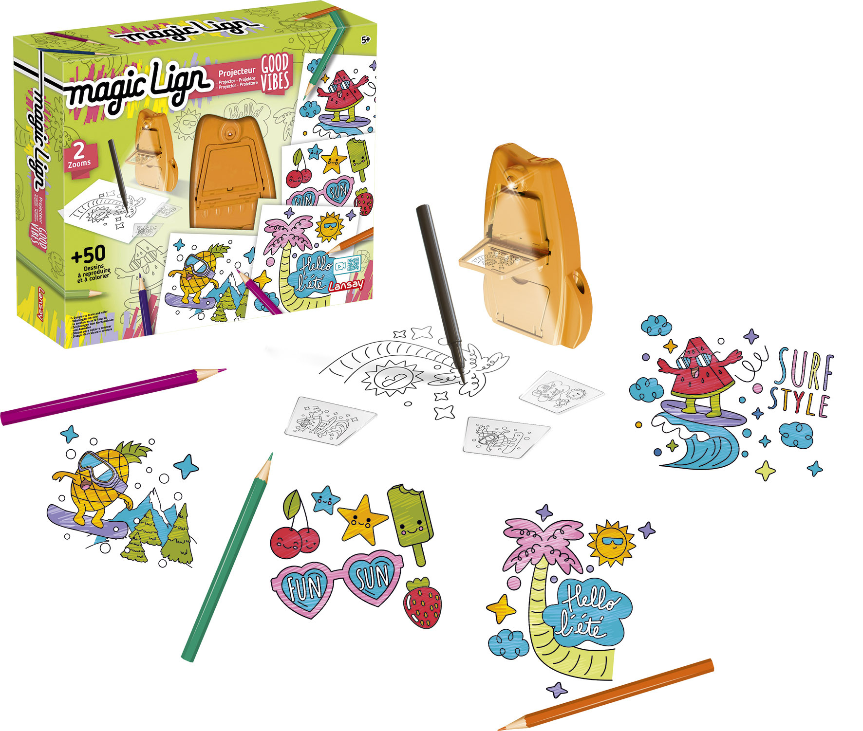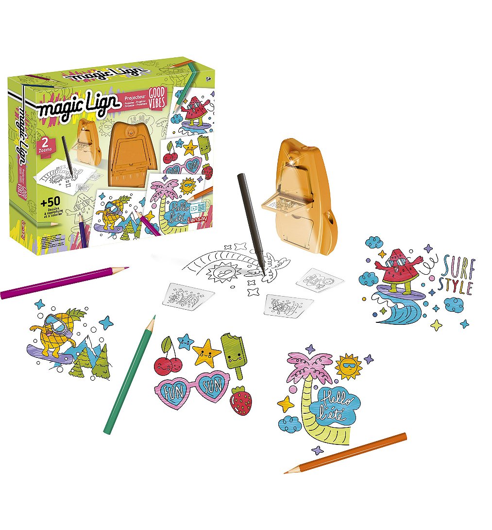 Reproduis facilement l’image de ton choix avec plus de 50 illustrations à dessiner et à associer : des motifs fun et pleins de good vibes, des objets cools, des personnages joyeux… et bien d’autres encore ! Grâce à son format compact, emmène-le partout avec toi ! Tu peux même ranger les illustrations dans un compartiment intégré au projecteur.