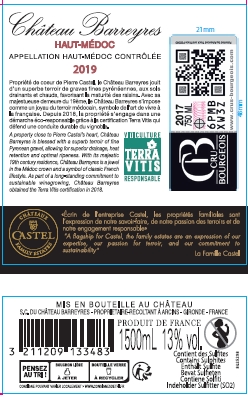 | Libellé | Magnum Château Barreyres, 2019 - Haut-Médoc AOP - Rouge - 1.5 L - étiquette abîmée |