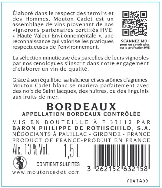 Libellé Magnum Mouton Cadet, 2019 - Bordeaux Blanc AOC - Blanc Sec - 1.5 L