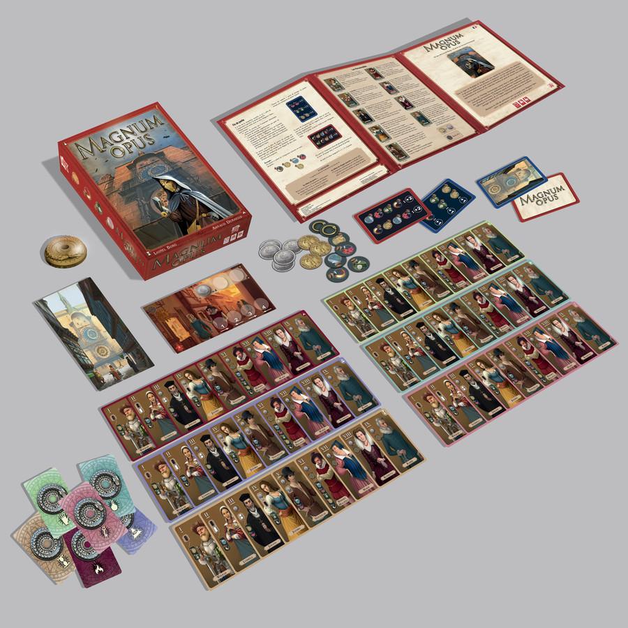 à partir de 12 ans 30 min à 1 heure 2 à 5 joueur(s) Sous le règne de Rodolphe II, Prague était une capitale des arts occultes. Des alchimistes et des personnalités de tous horizons s'y côtoyaient.Les uns espéraient concrétiser les formules alchimiques qu'ils avaient élaborées après des mois d'études. Les autres appréciaient de rencontrer des individus insolites au point de devenir leurs mécènes.Sur la place de l'Horloge Astronomique comme dans la célèbre ruelle d'Or, les bonnes rencontres permettaient aux alchimistes d'acquérir leurs mystérieux composants lors d'habiles tractations. L'Empereur, grand amateur d'ésotérisme, intervenait en influençant les acteurs de ces brigues.Il faisait connaître ses volontés grâce à un messager porteur d'un sceau énigmatique représentant un ouroboros.Rejoignez la ville des alchimistes pour accomplir votre Magnum Opus, votre >, avec plus de brio que vos pairs !"Chaque joueur incarne un alchimiste venu à Prague pour réunir les Composants alchimiques nécessaires à la réalisation d'une ou deux formules destinées à son Magnum Opus.Chaque Composant acquis, chaque formule complétée et chaque paire de Composants en vue rapportent des points de prestige. Le joueur en ayant le plus au terme de la partie est déclaré vainqueur. MATÉRIEL 2 plateaux54 cartes Personnalité10 Composants en vue10 cartes Grand Oeuvre1 médaillon en métal Ouroboros30 jetons Monnaie