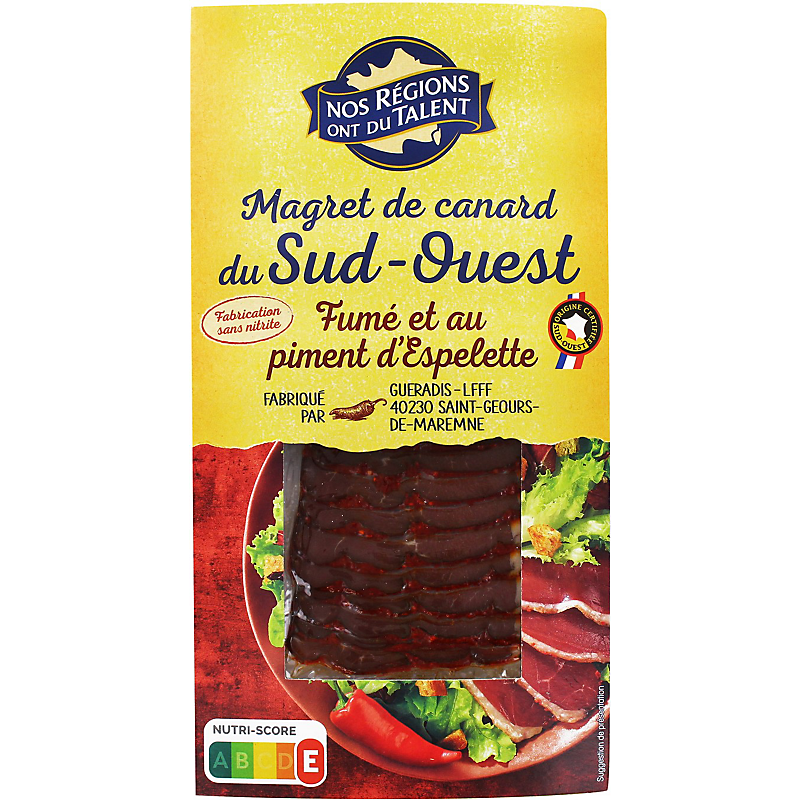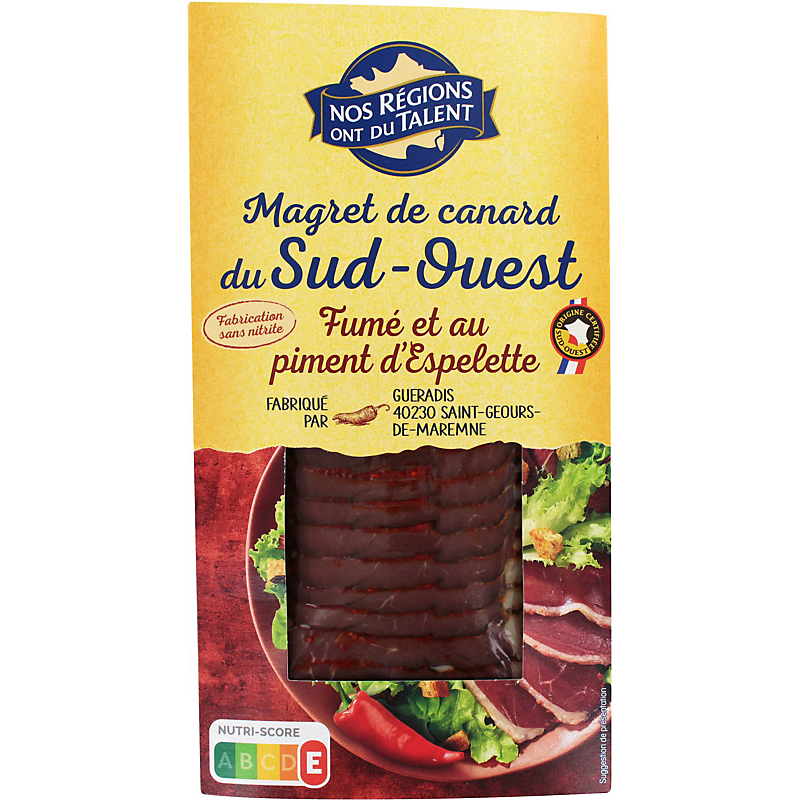 Tranches de magret de canard du Sud-Ouest fumé au bois de hêtre, au piment d'espelette NOS REGIONS ONT DU TALENT