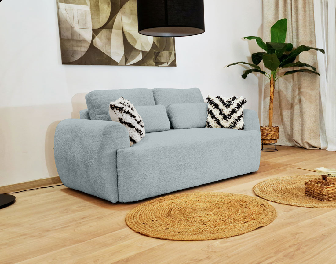 Le canapé droit 2 places Mahina apporte une touche de modernité à votre intérieur. Il combine les qualités d’un design contemporain avec les avantages d’un tissu innovant. Le tissu bouclette est actuellement très prisé dans le design d’intérieur pour sa beauté et sa modernité. Il est tout doux, ajoute du confort à l’ensemble et donne un aspect chaleureux à la pièce. Il est facile à entretenir et très résistant à l’usure. Disponible dans une variété de couleurs tendance, le tissu bouclette permet de personnaliser le canapé pour qu'il s’harmonise parfaitement avec votre intérieur. Jouez également avec les couleurs. Mahina est disponible en plusieurs teintes, ultra tendances : beige, bleu, rose, jaune, taupe, gris clair, gris foncé et rouille.