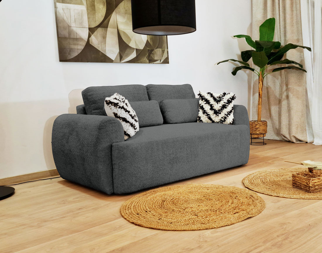 Le canapé droit 2 places Mahina apporte une touche de modernité à votre intérieur. Il combine les qualités d’un design contemporain avec les avantages d’un tissu innovant. Le tissu bouclette est actuellement très prisé dans le design d’intérieur pour sa beauté et sa modernité. Il est tout doux, ajoute du confort à l’ensemble et donne un aspect chaleureux à la pièce. Il est facile à entretenir et très résistant à l’usure. Disponible dans une variété de couleurs tendance, le tissu bouclette permet de personnaliser le canapé pour qu'il s’harmonise parfaitement avec votre intérieur. Jouez également avec les couleurs. Mahina est disponible en plusieurs teintes, ultra tendances : beige, bleu, rose, jaune, taupe, gris clair, gris foncé et rouille.