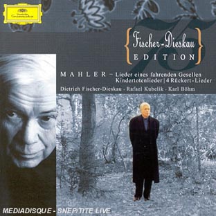 | Liste des pistes | 1.1 . lieder eines fahrenden gesellen : wenn mei schatz hochzeit macht - Gustav Mahler 1.2 . lieder eines fahrenden gesellen : ging heut morgen ubers feld - Gustav Mahler 1.3 . lieder eines fahrenden gesellen : ich hab ein gluhend messer - Gustav Mahler 1.4 . lieder eines fahrenden gesellen : die zwei blauen augen - Gustav Mahler 1.5 . 4 lieder : um mitternacht - Gustav Mahler 1.6 . 4 lieder : ich atmet' einen linden duft - Gustav Mahler 1.7 . 4 lieder : blicke mir nicht in die lieder - Gustav Mahler 1.8 . 4 lieder : ich bin der welt abhanden gekommen - Gustav Mahler 1.9 . kindertotenlieder : nun will di sonn so hell aufgehn - Gustav Mahler 1.10 . kindertotenlieder : nun seh ich woll, warum so dunkle flammen - Gustav Mahler 1.11 . kindertotenlieder : wenn dein mutterlein - Gustav Mahler 1.12 . kindertotenlieder : oft denk ich, sie sind nur ausgegangen - Gustav Mahler 1.13 . kindertotenlieder : in diesem wetter, in diesem braus - Gustav Mahler |