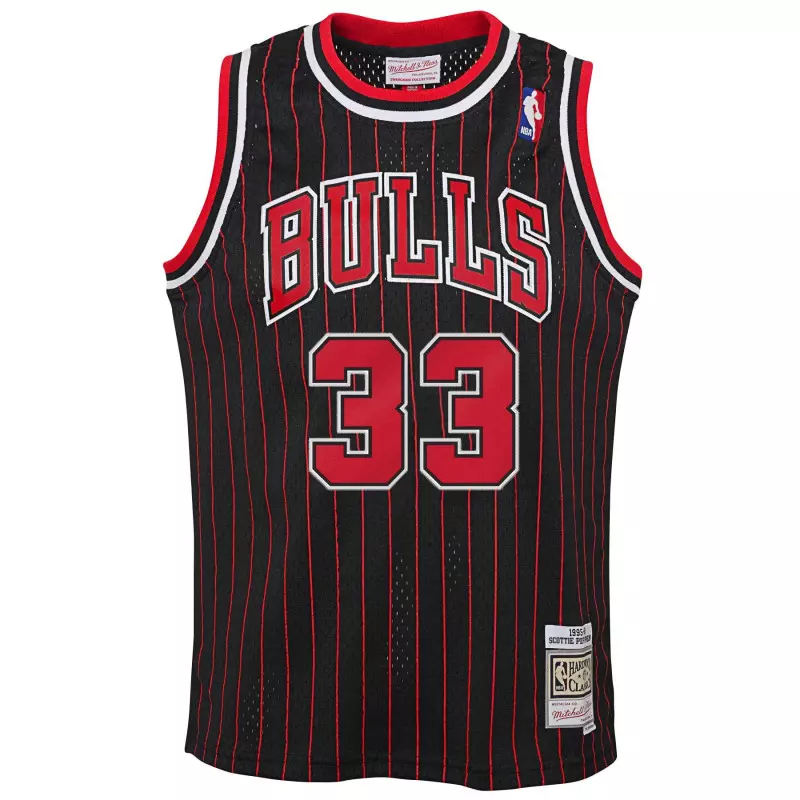 Maillot NBA Scottie Pippen Chicago Bulls 1995 Mitchell & Ness Hardwood Classic rayé Noir Pour enfant