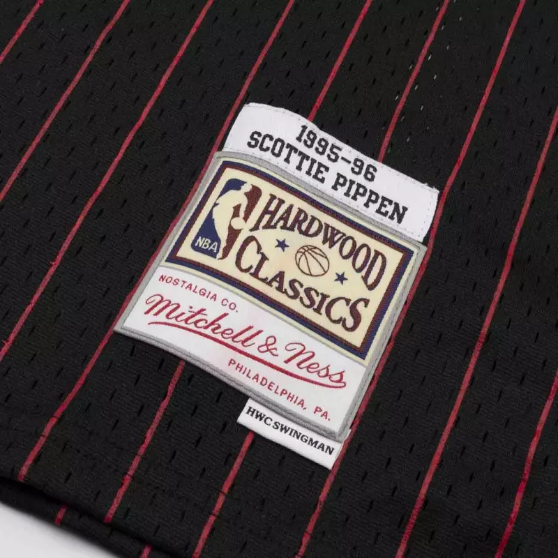 Détails authentiques : Les applications thermocollées en twill représentent le nom et le numéro de Scottie Pippen, garantissant un look premium.