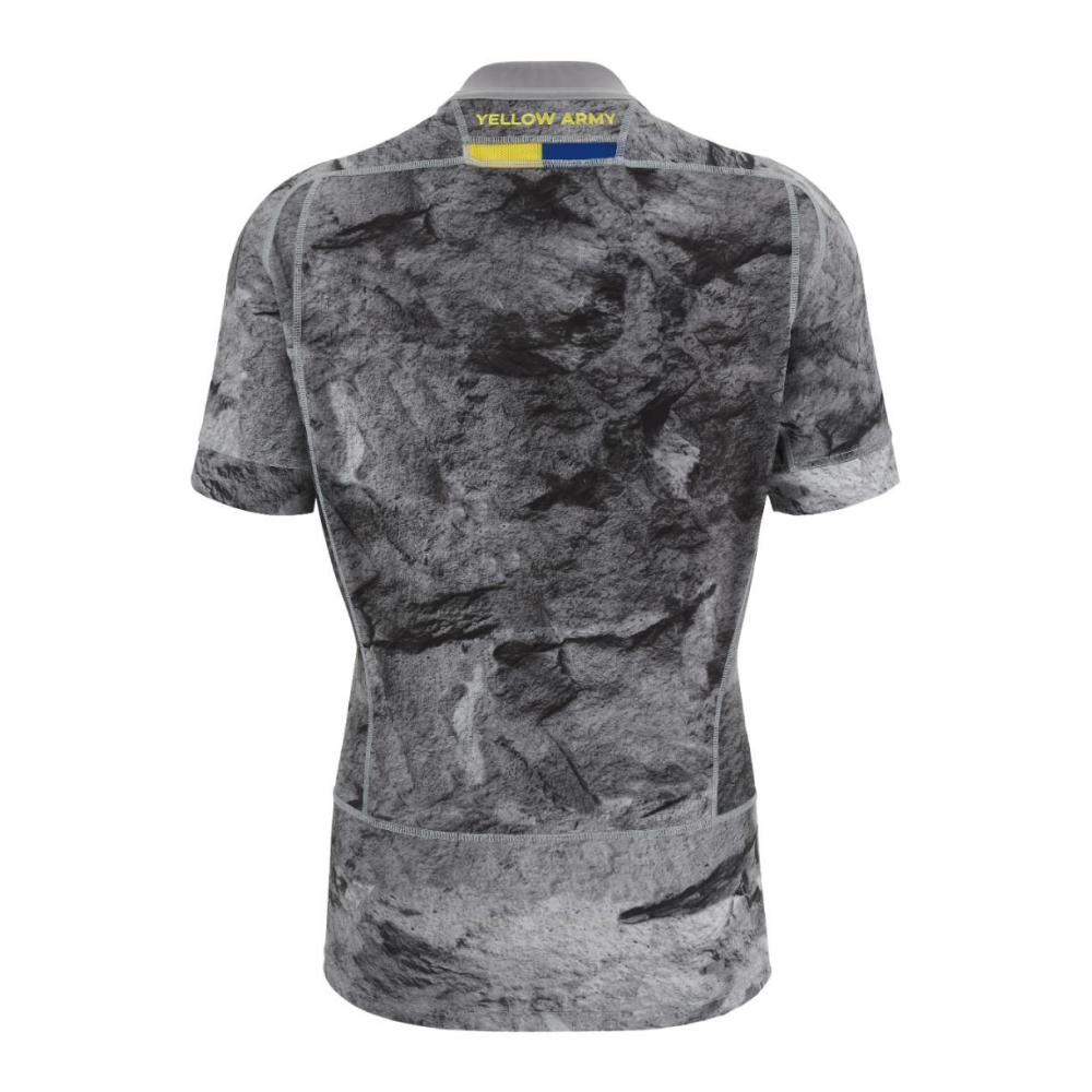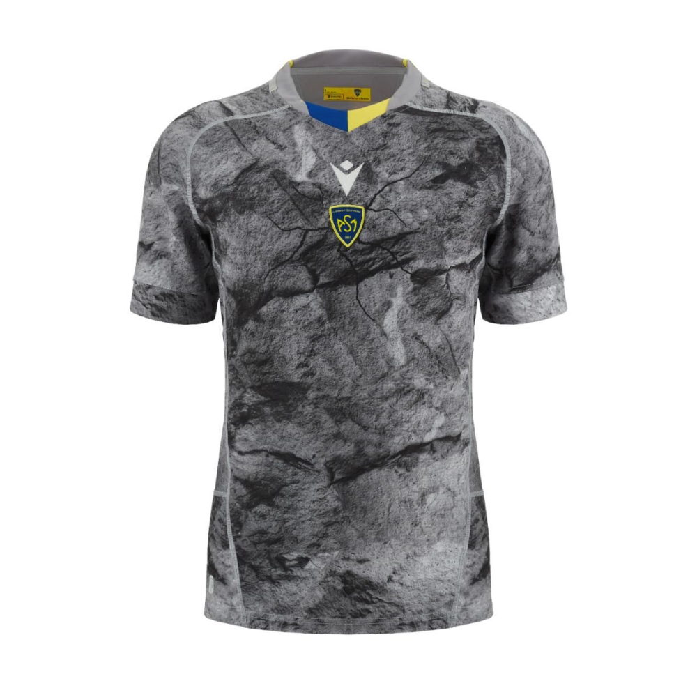 Ce maillot Third 2023-24 de l'ASM Clermont est un hommage vibrant au territoire clermontois et à son héritage volcanique. Inspiré par la pierre de Volvic, symbole de la ville et de sa saison européenne, ce maillot arbore un motif gris et noir effet pierre qui incarne l'authenticité et la force de la région. La coupe Replica, légèrement plus ample que celle portée par les joueurs, offre un confort optimal tout en conservant un design identique. Fabriqué à partir d'un tissu éco-responsable et hautement respirant, il assure fraîcheur et confort tout au long de la journée. Les détails comprennent un logo ASM et équipementier Macron au centre, 'Yellow Army' brodé à l'arrière du col, et un col rond tricolore. Parfait pour soutenir l'ASM Clermont avec style et passion, ce maillot en polyester 100% incarne la fierté et l'identité profonde du club. Référence : 58140156
