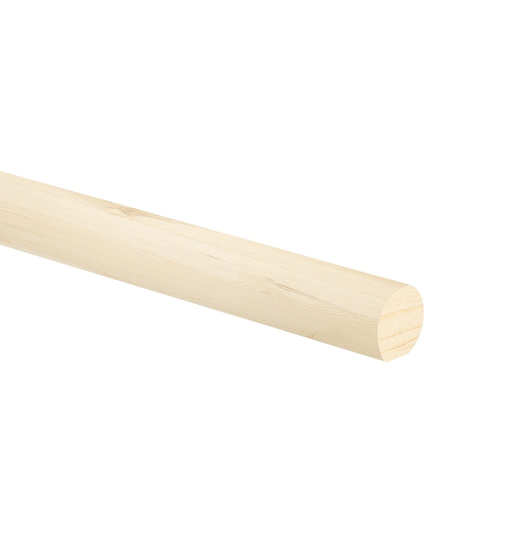 Main courante sapin Ø40x2000mm plat + bout arrondi. Sapin/Epicéa d’origine européenne, non verni, non peint. Utilisation intérieure uniquement.