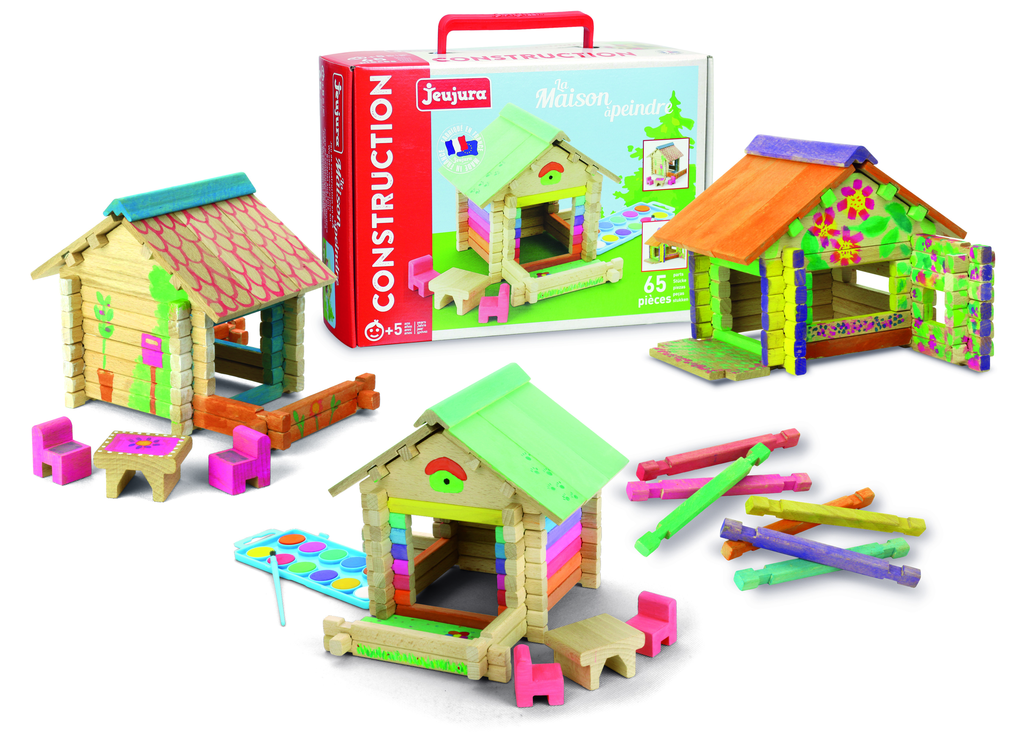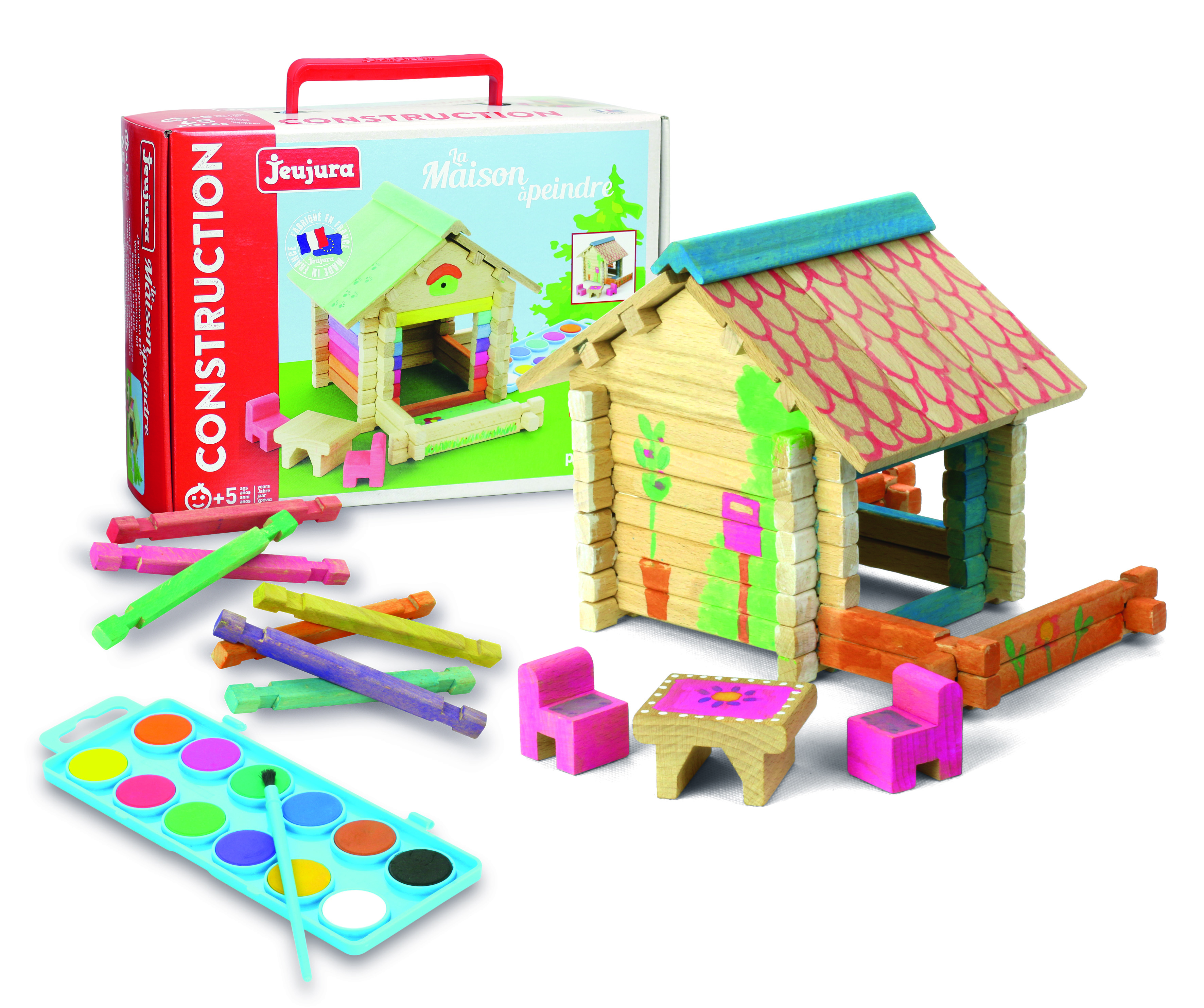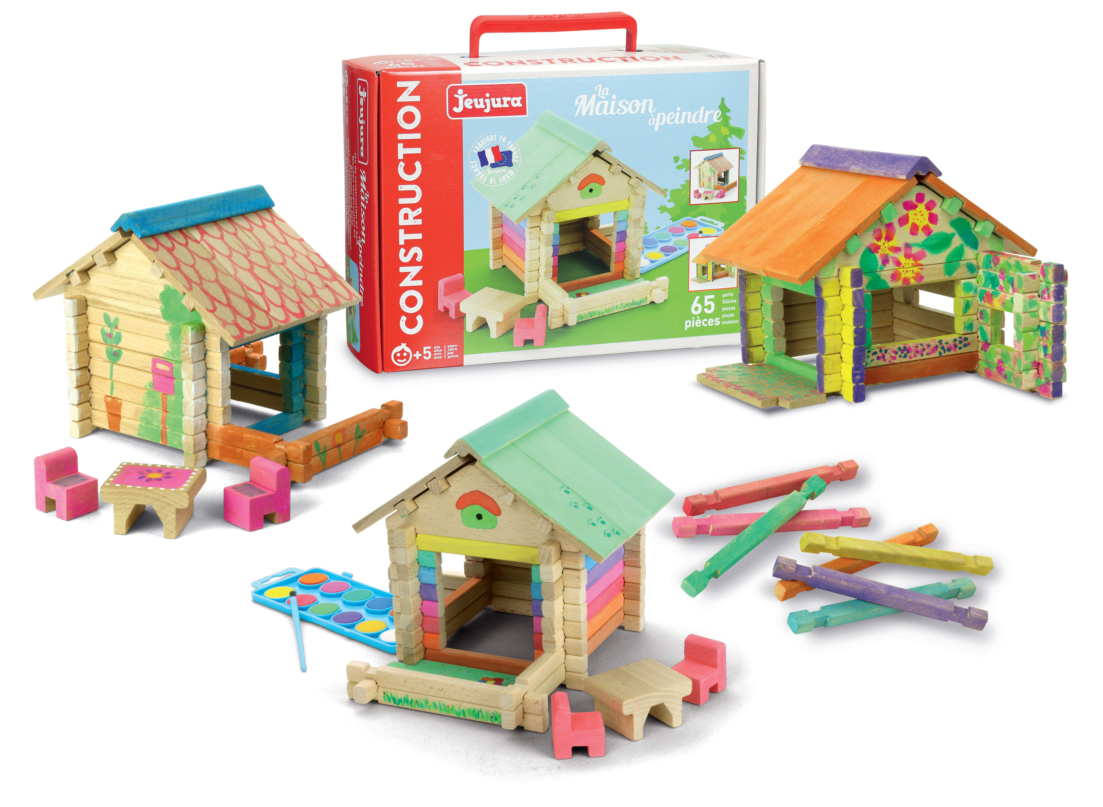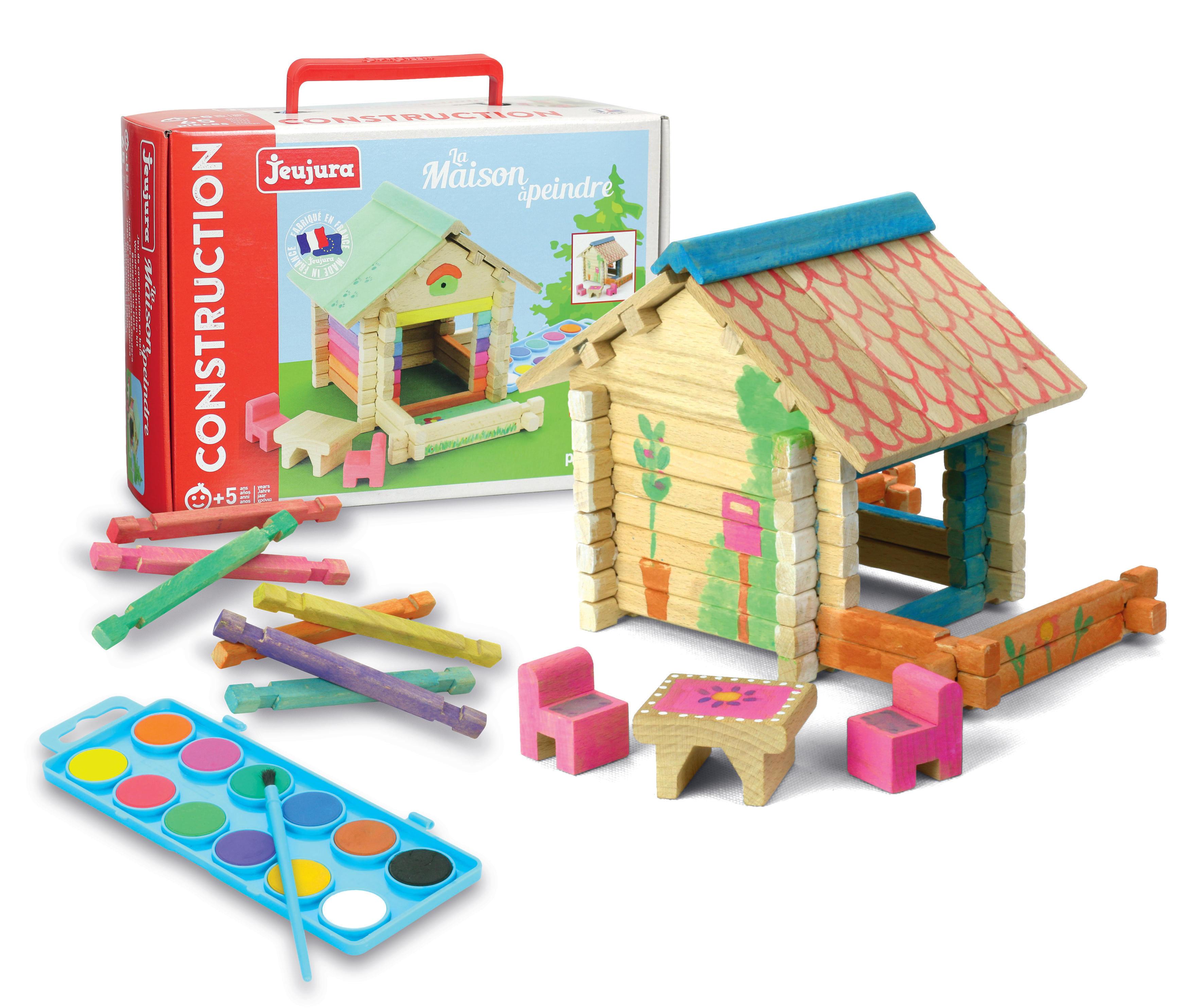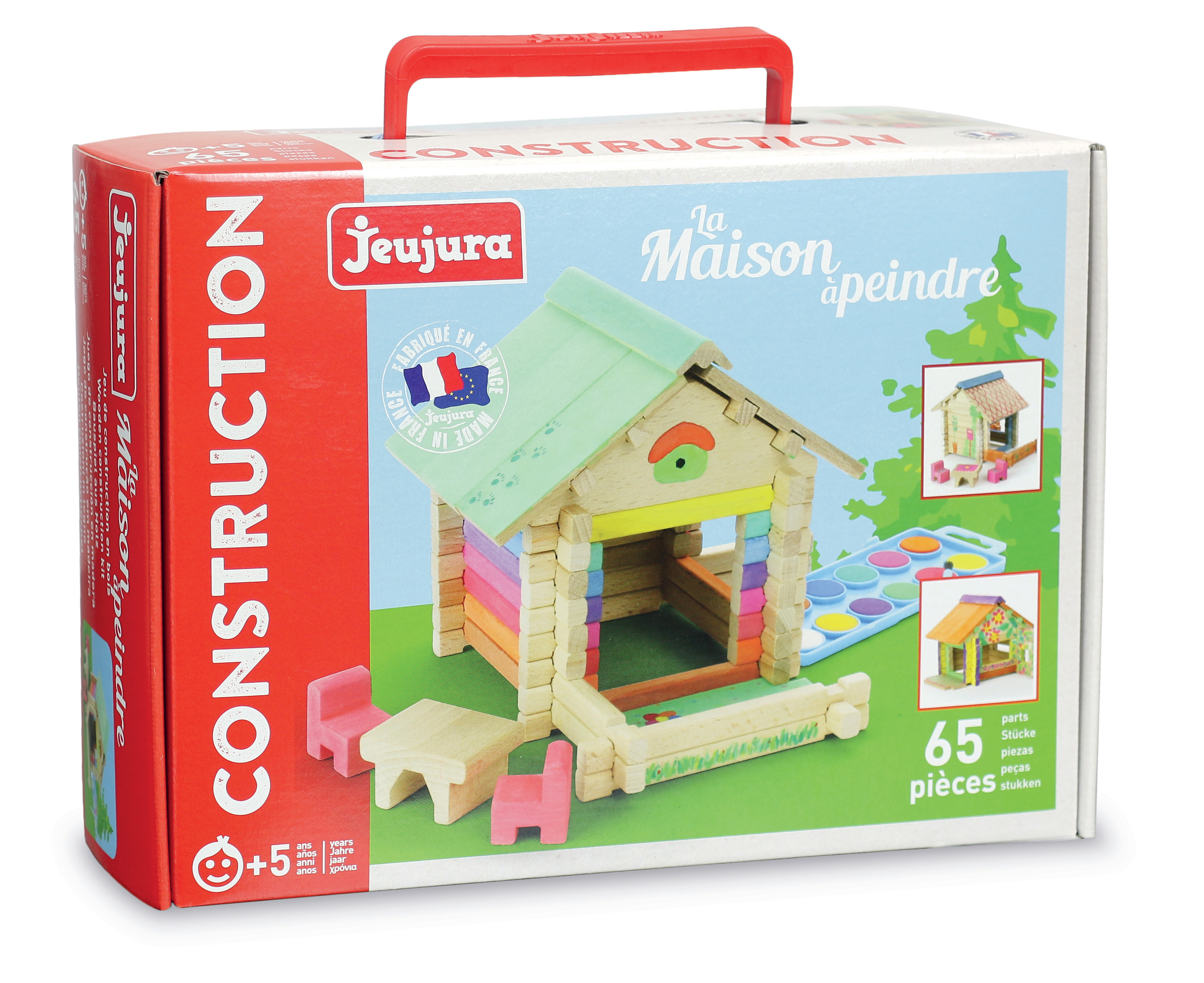 | La boîte contient | Maison à Peindre - 65 pièces : Jeu de construction en bois naturel, à peindre et à décorer au gré de son imagination, avec une notice de montage et une palette de peinture - Valisette carton : 26 x 20 x 9 cm. A partir de 5 ans. |