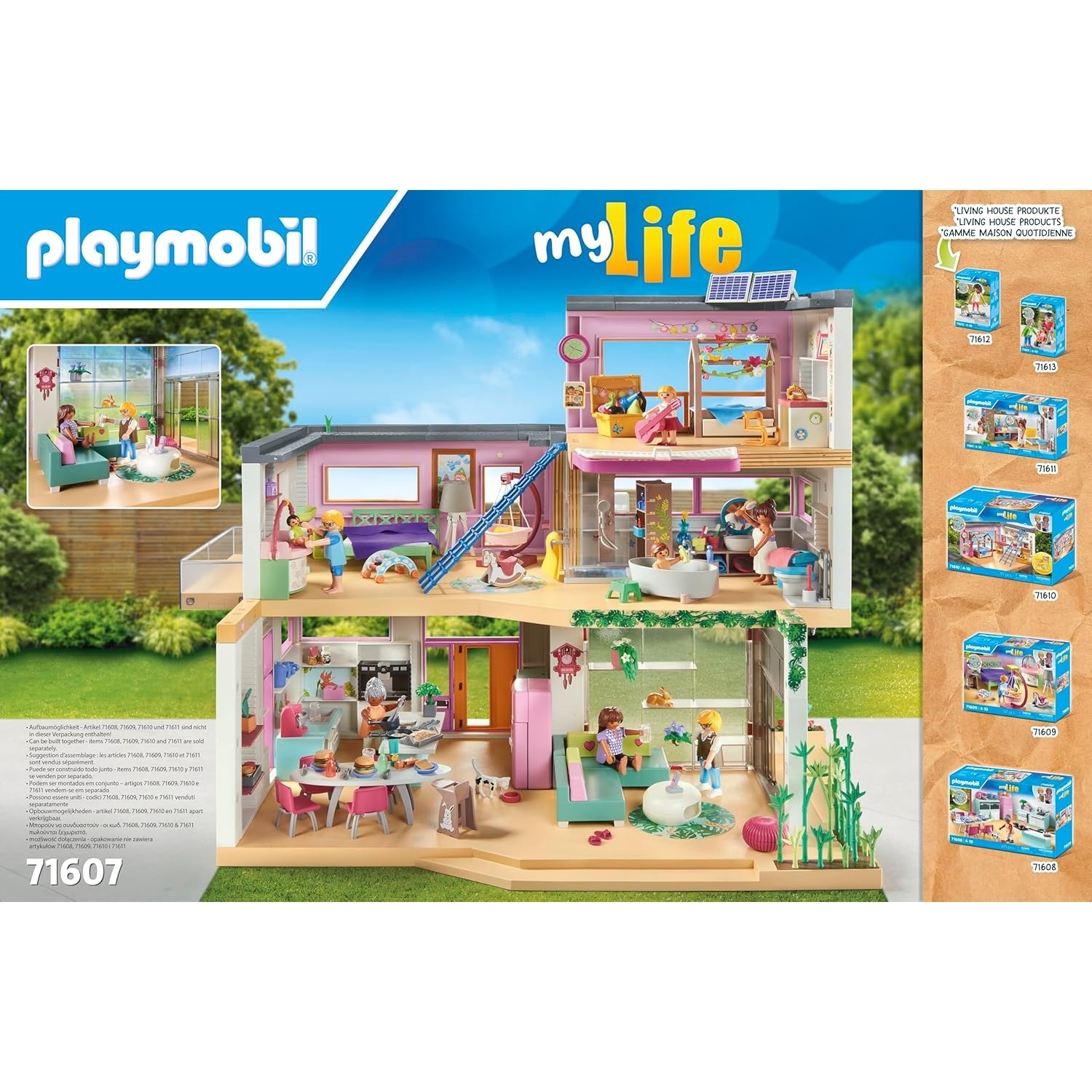 Dans cette maison spacieuse avec véranda, les rêves prennent vie ! Cette maison lumineuse offre amplement d'espace pour jouer et pour une décoration personnalisée. Le salon constitue l'espace central de cette grande demeure et est entièrement équipé. Cette maison peut être complétée et redécorée à tout moment. Un panneau solaire installé sur le toit garantit une alimentation en énergie respectueuse de l'environnement. La maison peut être agrandie et personnalisée avec quatre ensembles de pièces différents, laissant libre cours à une créativité sans fin. Certains ensembles comprennent également des autocollants pour une décoration personnalisée du bâtiment et de l'intérieur. Tous les ensembles de l'univers de jeu de la Maison d'architecte PLAYMOBIL sont fabriqués fabriquée avec plus de 80% de matériaux recyclés ou biosourcés en moyenne.