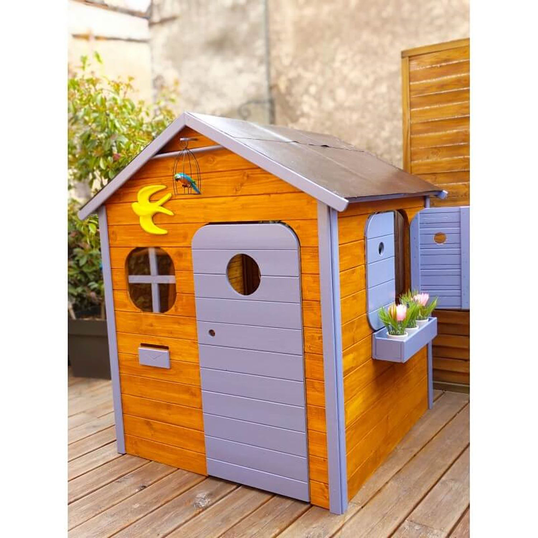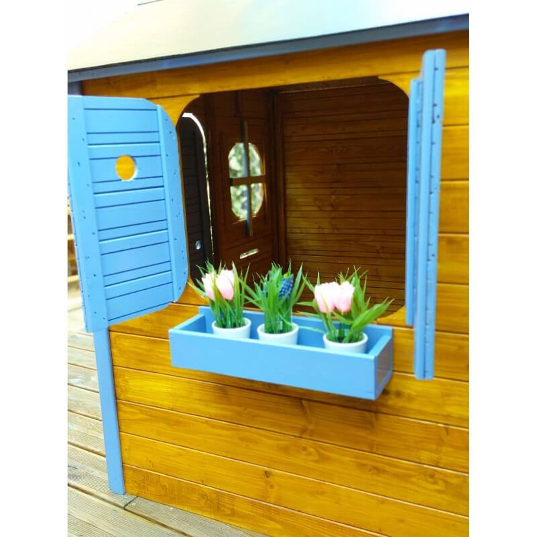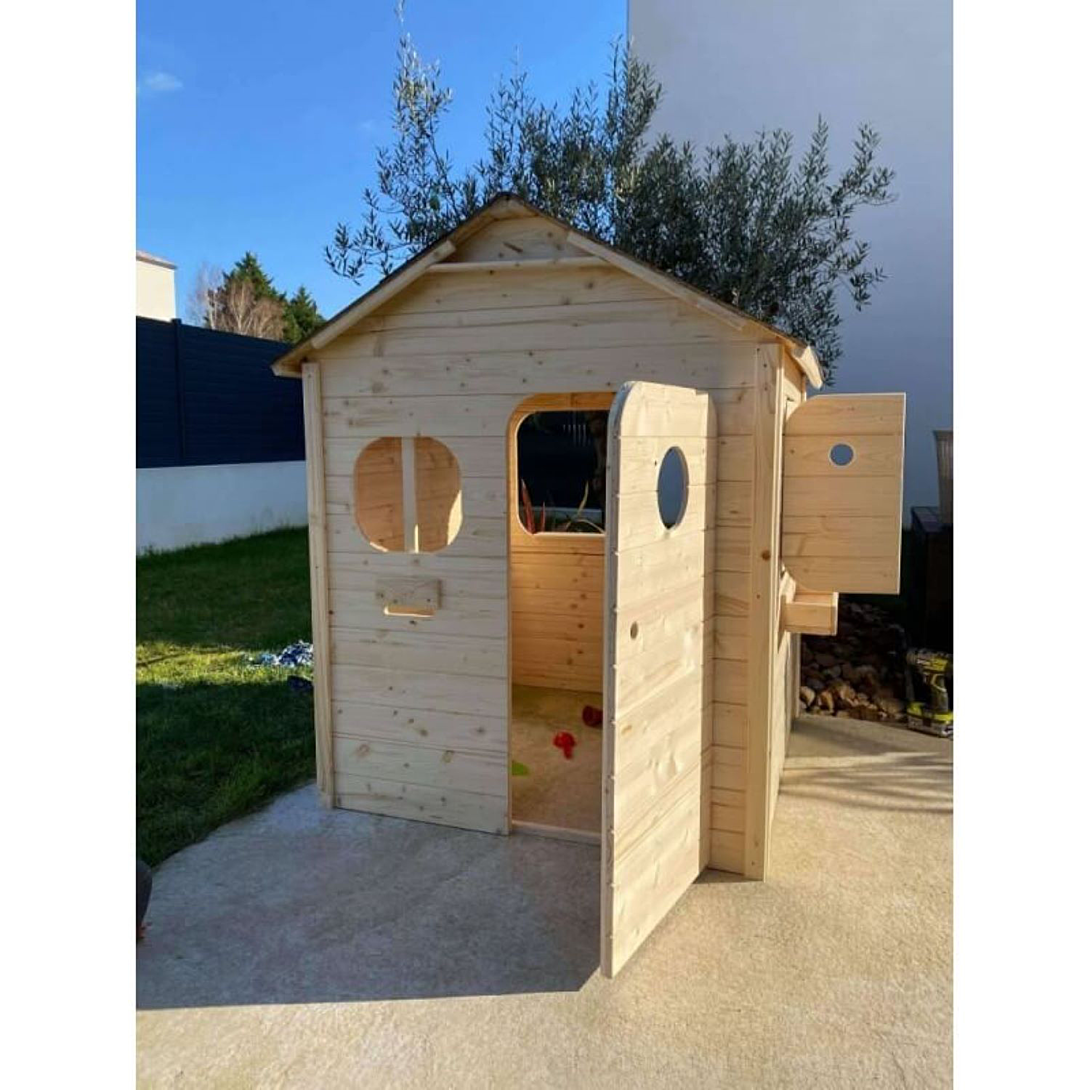 La maison Fidji offre une grande ouverture à l'arrière, elle est est idéale pour jouer à la marchande . Avec une belle hauteur sous plafond, cette maisonnette bois saura ravir les petits comme les plus grands.