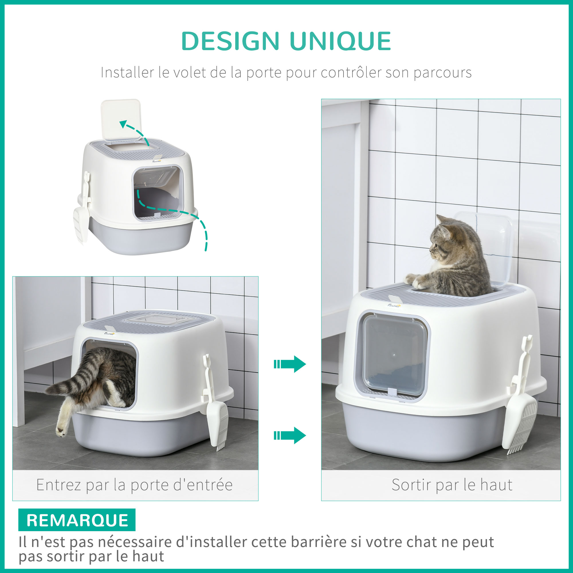 | Libellé | Maison de toilette litière pour chat double porte battante et supérieure - filtre odeur + pelle fournis - gris |
