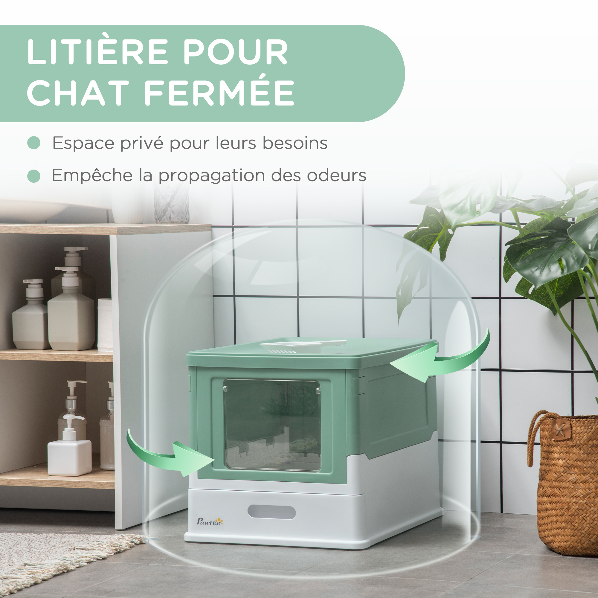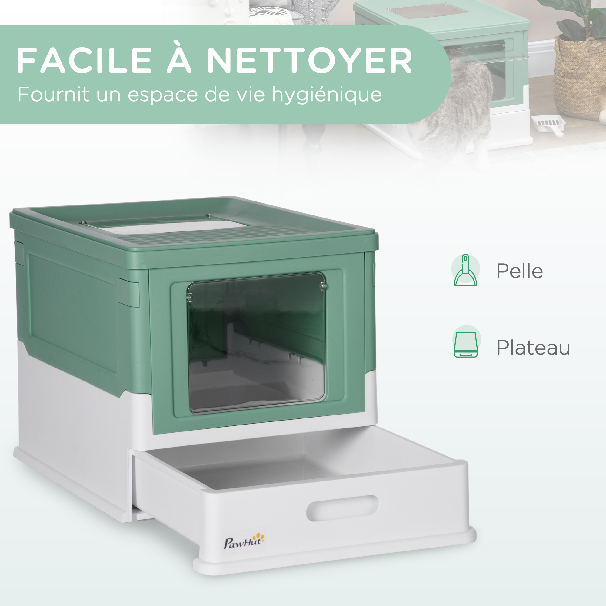 | Libellé | Maison de toilette pliable pour chat - tiroir à litière coulissant, porte battante et trappe transparente, pelle - blanc vert |