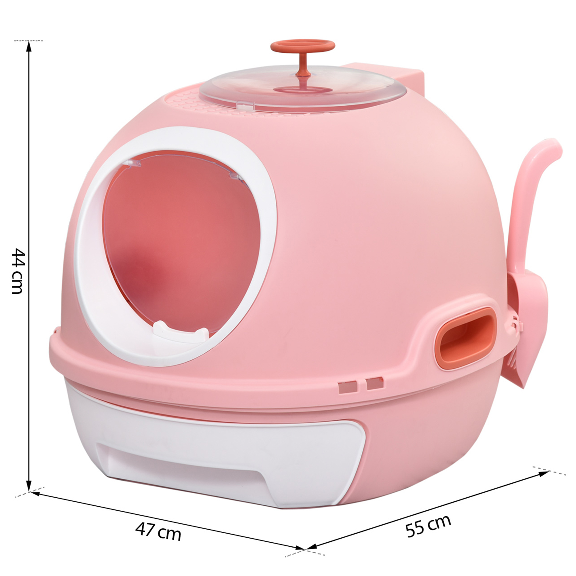 | Libellé | Maison de toilette portable pour chat tiroir à litière coulissant porte battante lucarne + pelle fournis dim. 47L x 55l x 44H cm rose |